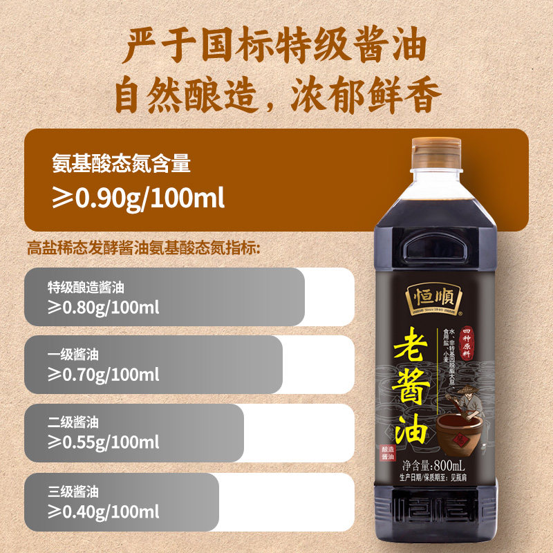 【特级酱油】恒顺老酱油800ml酿造家用厨房调味品料凉拌炒菜红烧