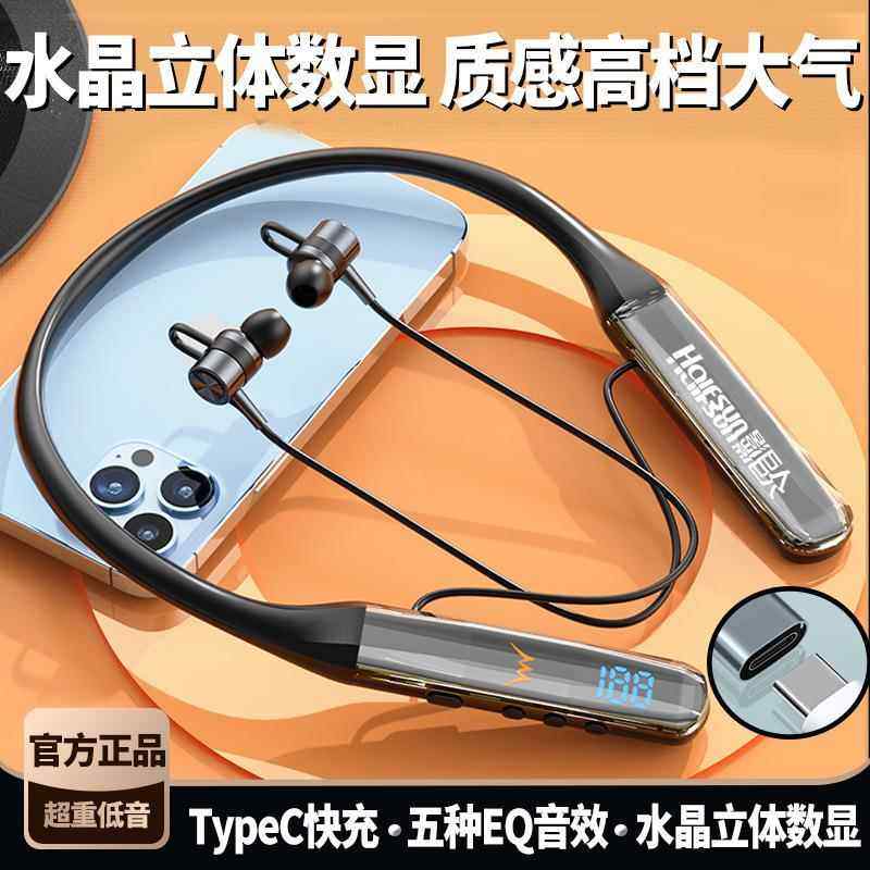 影巨人蓝耳牙耳机入颈挂式水晶数显超长待机运动电竞游戏手机耳机