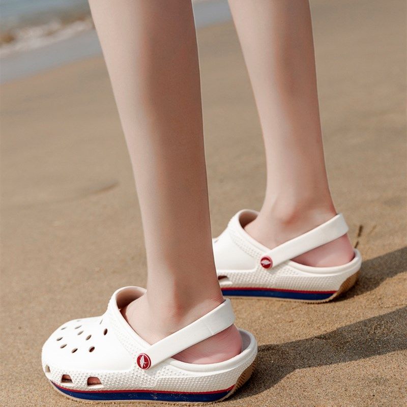 包头凉鞋女夏室内拖鞋平底厚底外穿孕妇防滑沙滩海边牛筋底洞洞鞋