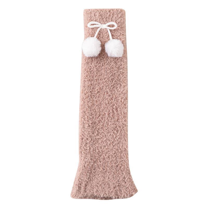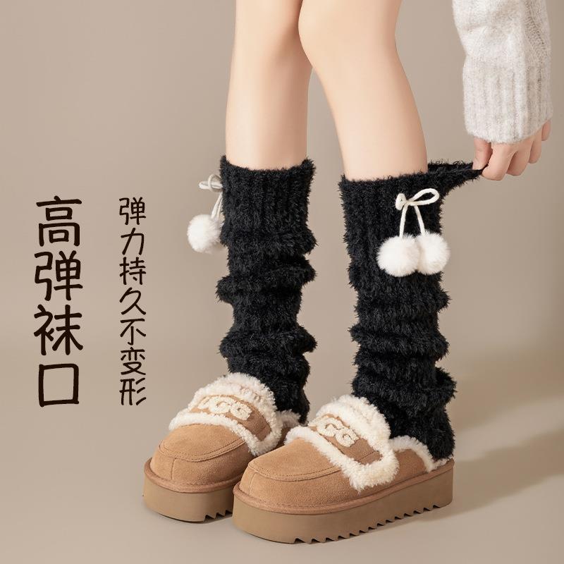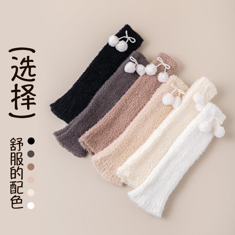 堆堆腿套女秋冬款保暖珊瑚绒蝴蝶结袜套加绒加厚睡眠长筒小腿袜子