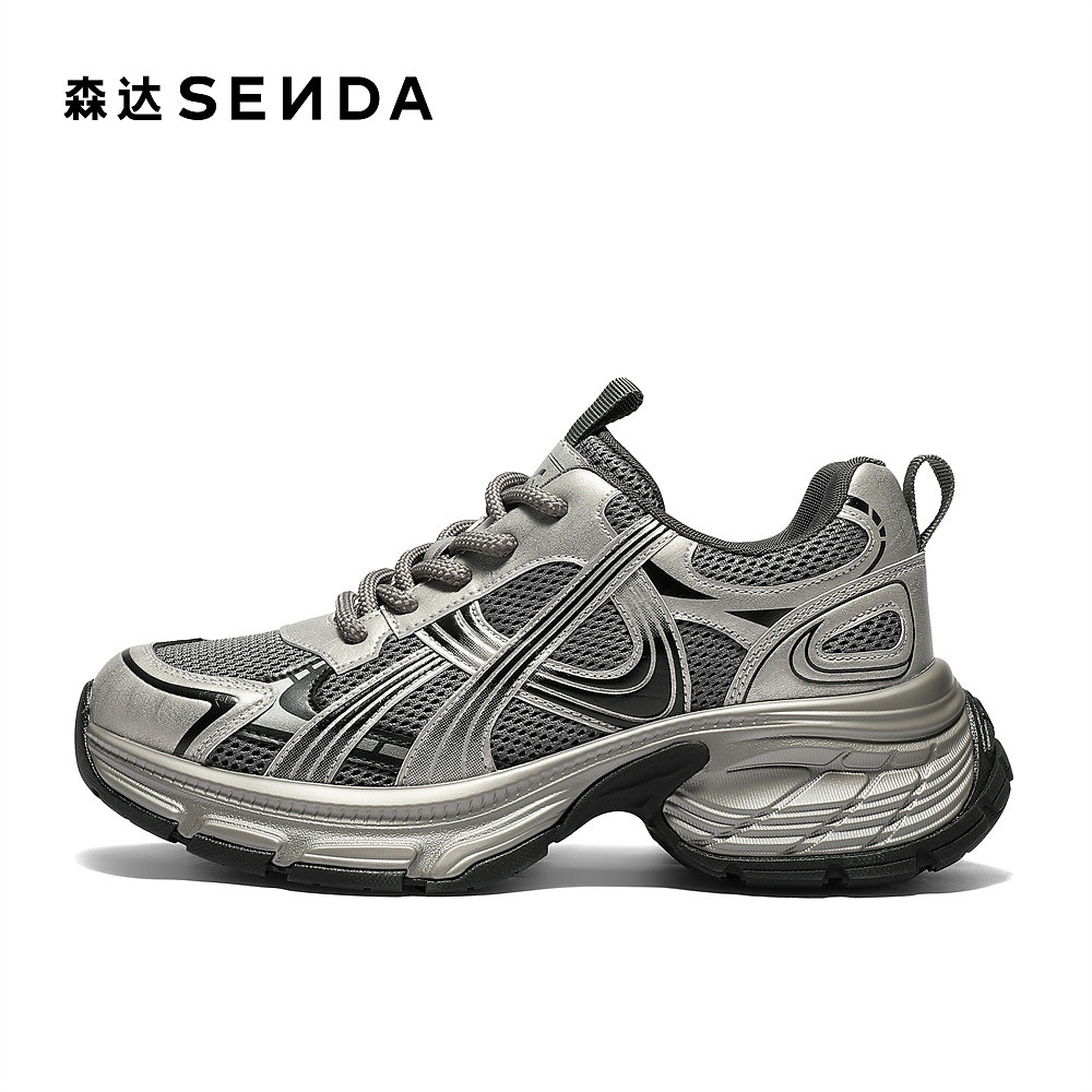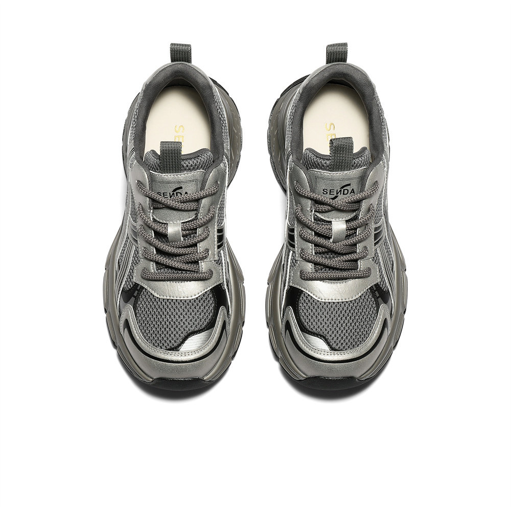 森达厚底银色老爹鞋女25年新款商场同款加绒休闲鞋增高女鞋XVE01