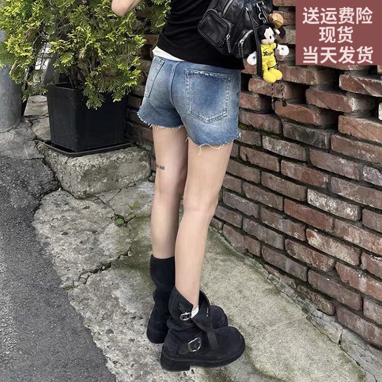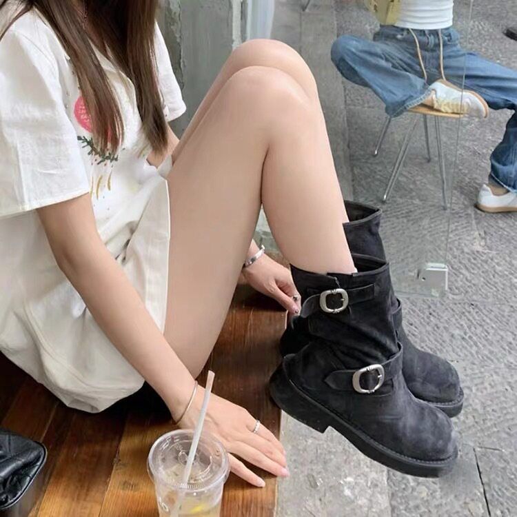 马丁靴圆头羊皮中筒真皮靴厚底靴女牛仔短靴版皮带扣潮百搭西部~