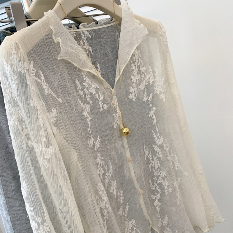 设计感小众不撞款V领绝美蕾丝开衫春秋法式纯欲微透刺绣薄款上衣