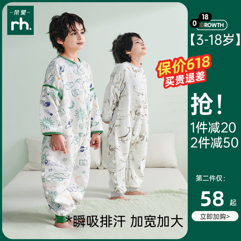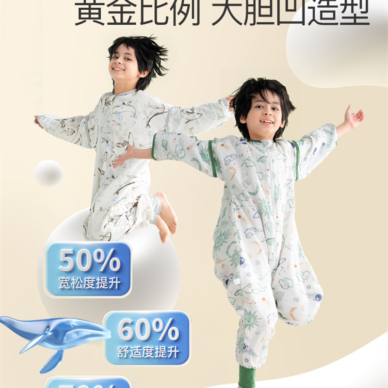儿童睡袋春秋款春夏季薄款纱布中大童分腿空调房防踢被子神器夏天