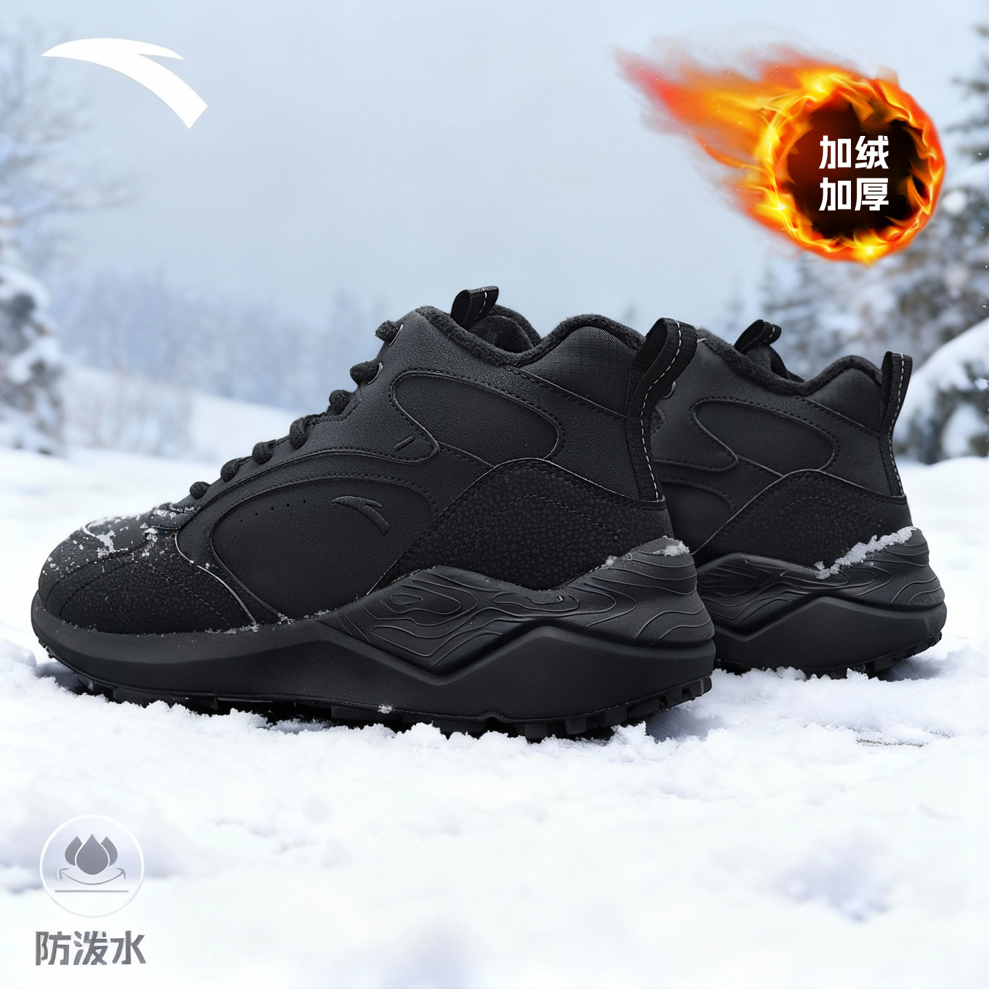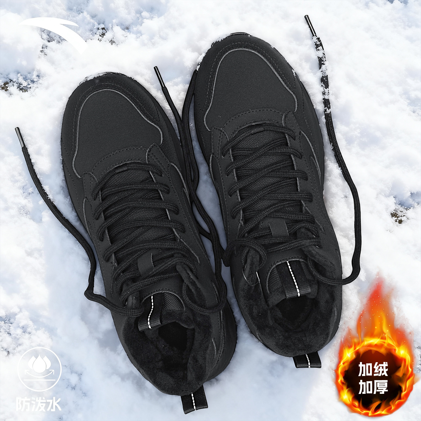 安踏踏洲大棉鞋黑色男鞋冬季皮面防滑雪地靴加绒保暖休闲运动鞋子