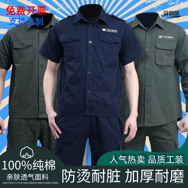 夏季工作服套装短袖男女耐脏劳保防护搬运电焊工地干活纯棉单上衣