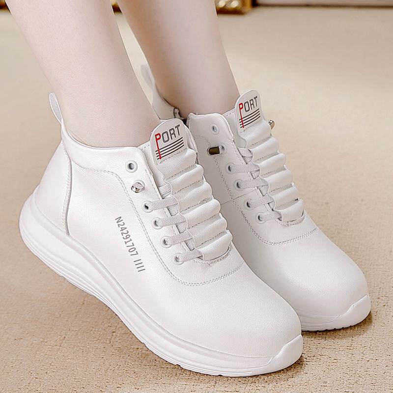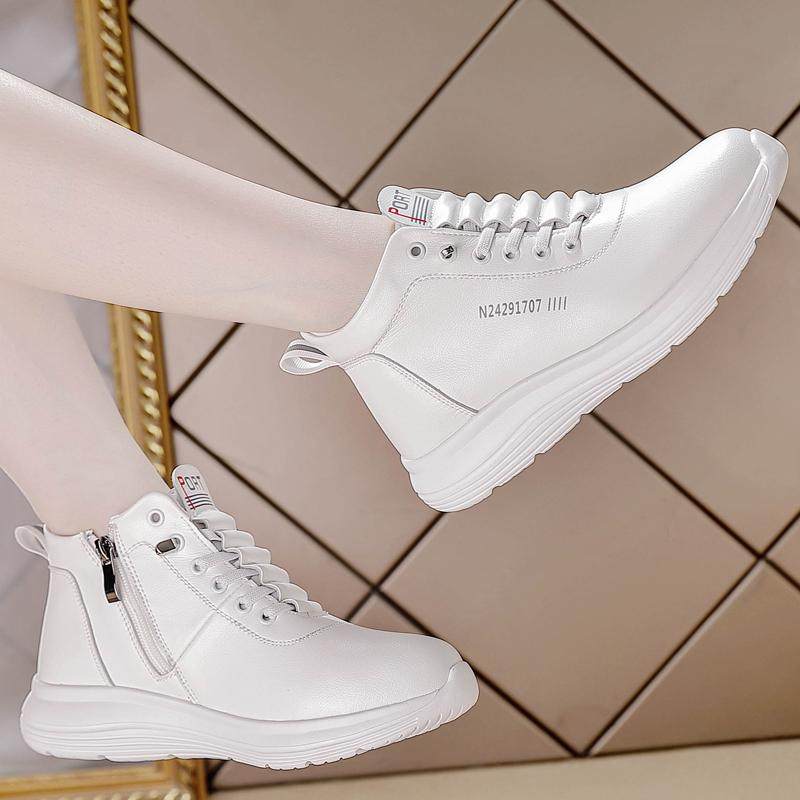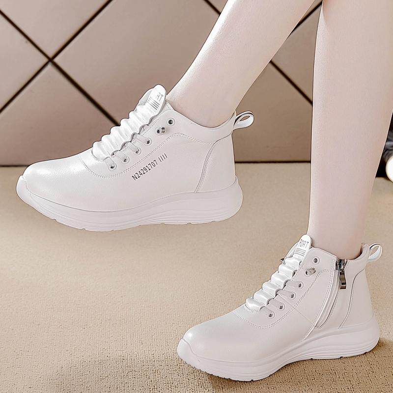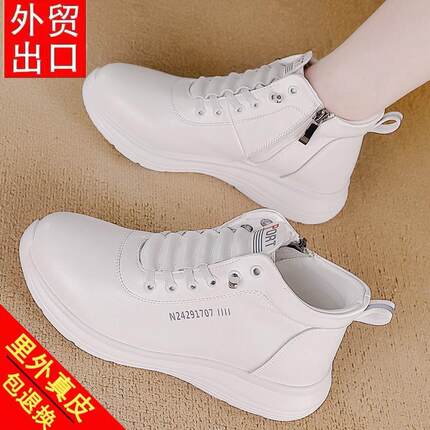 真皮小白鞋高帮鞋女2025新款潮韩版白色高腰板鞋女休闲运动旅游鞋