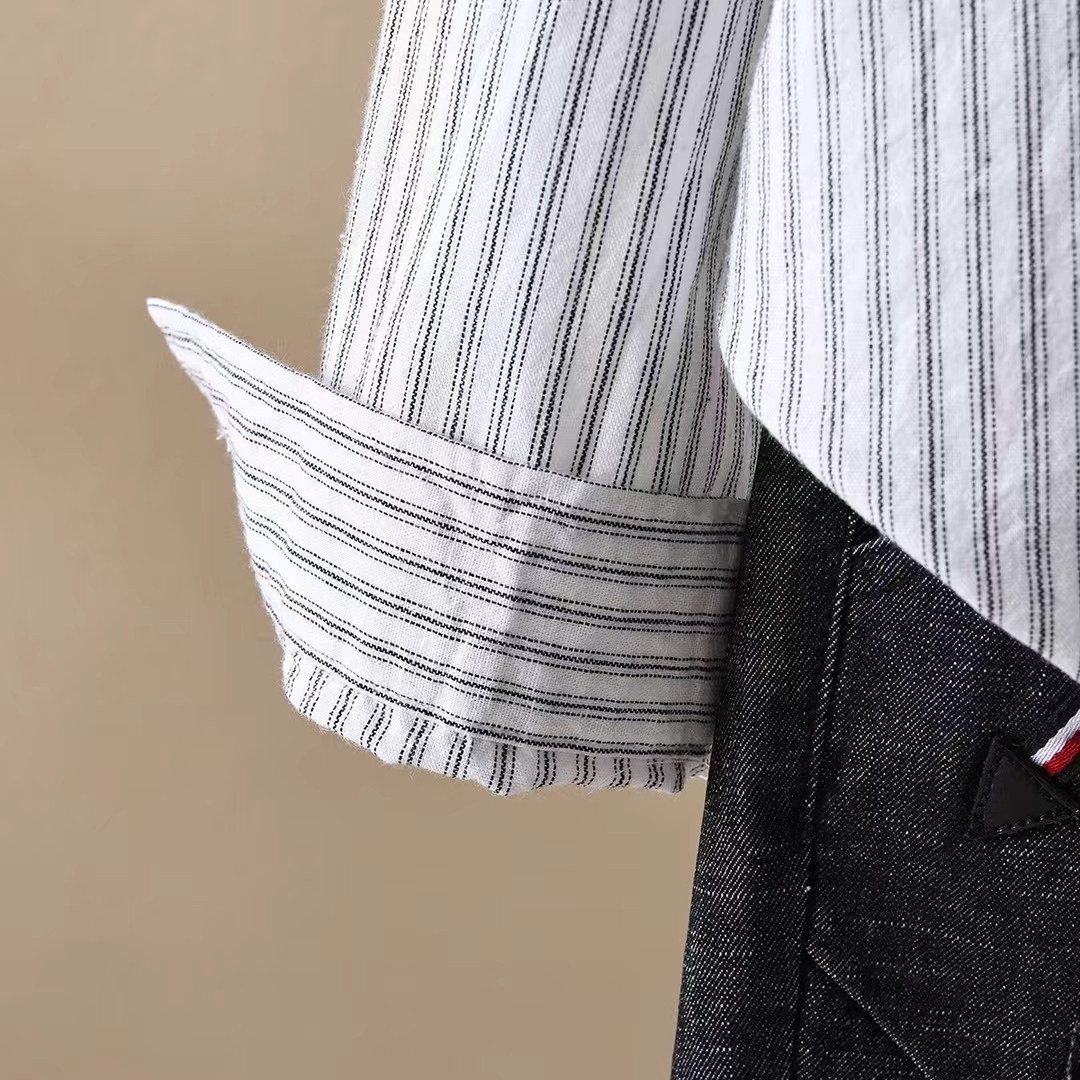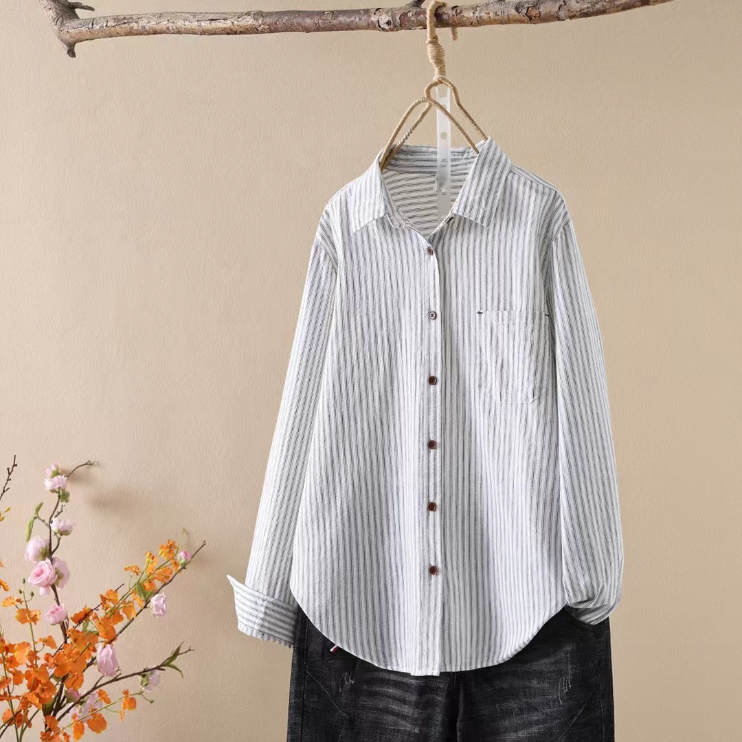 「复古日系 条纹衬衫」成衣水洗100%棉 春季宽松百搭纯棉衬衣S020