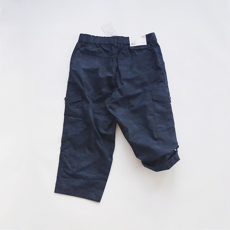 男休闲工装短裤七分裤迷彩深蓝色纯棉全棉耐磨户外运动松紧多口袋
