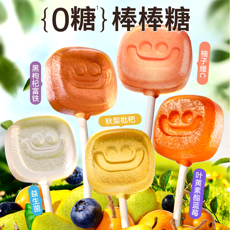 京都念慈菴棒棒糖秋梨枇杷无糖亲牙叶黄素蓝莓益生菌儿童零食糖果
