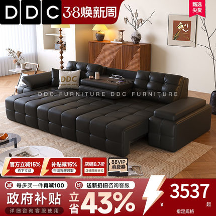 DDC意式极简智能电动功能沙发客厅零靠墙伸缩全青皮劳伦斯沙发床