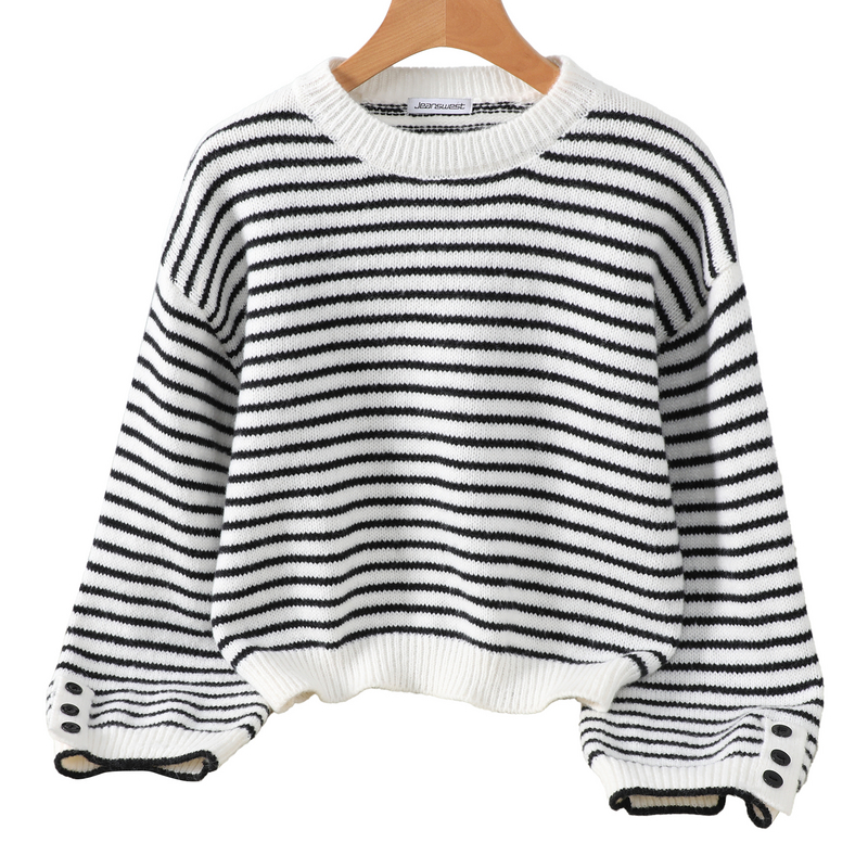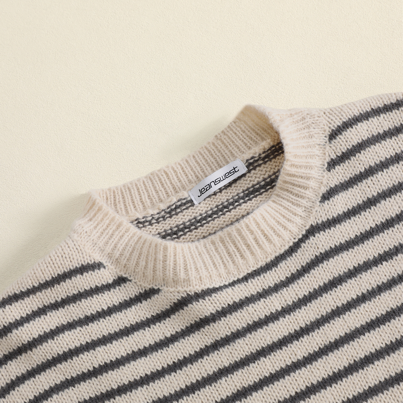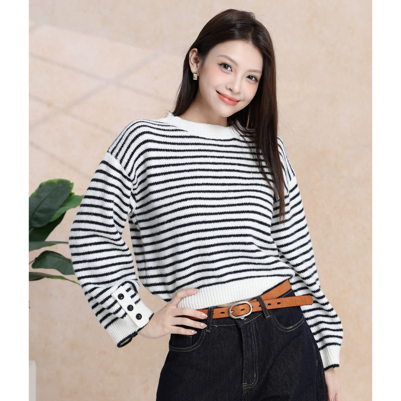 LY真维斯女装宽松落肩款条纹毛衣 2025冬季新品时尚圆领针织衫女