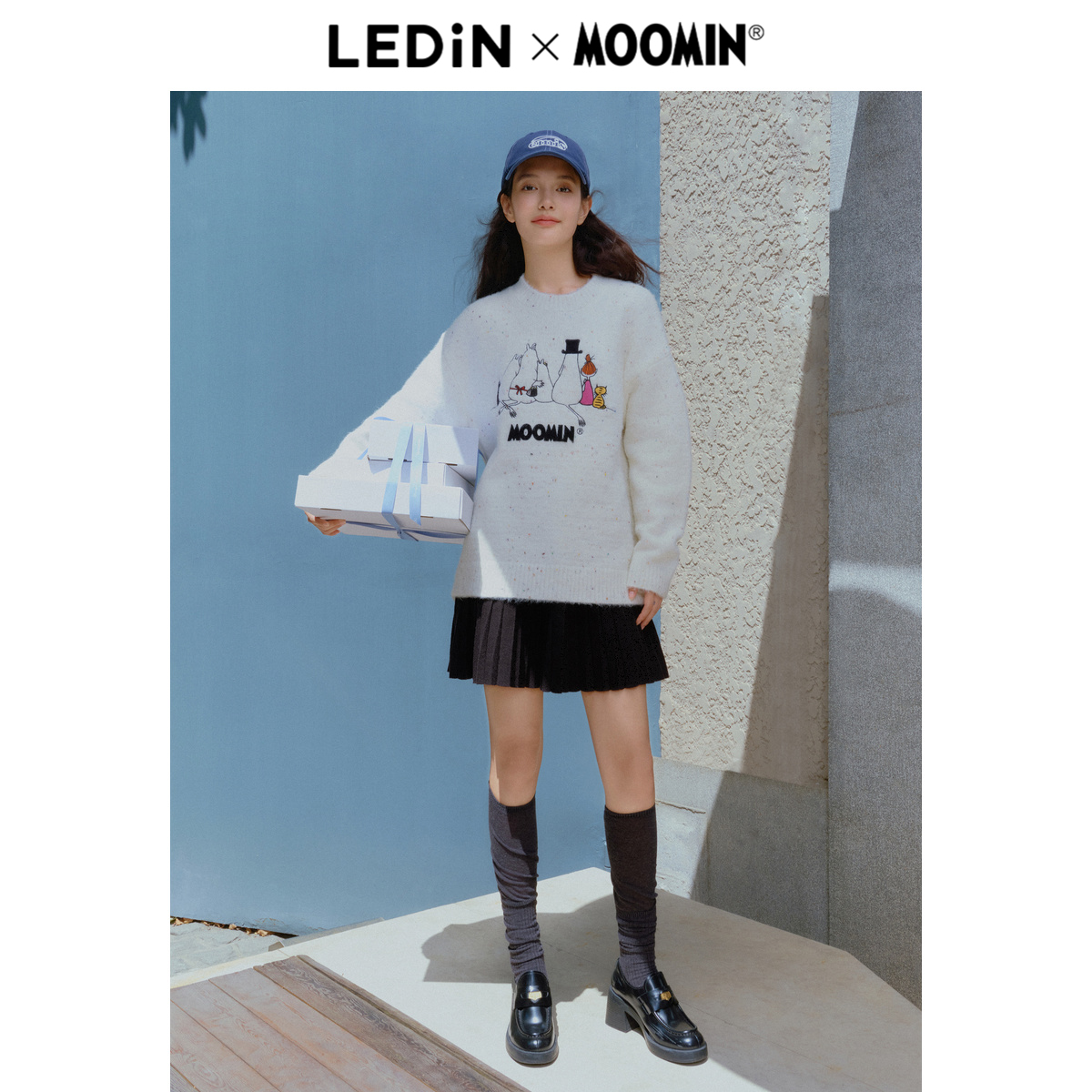 【姆明联名】乐町圆领线套衫女冬季新款宽松毛衣彩点纱毛衫