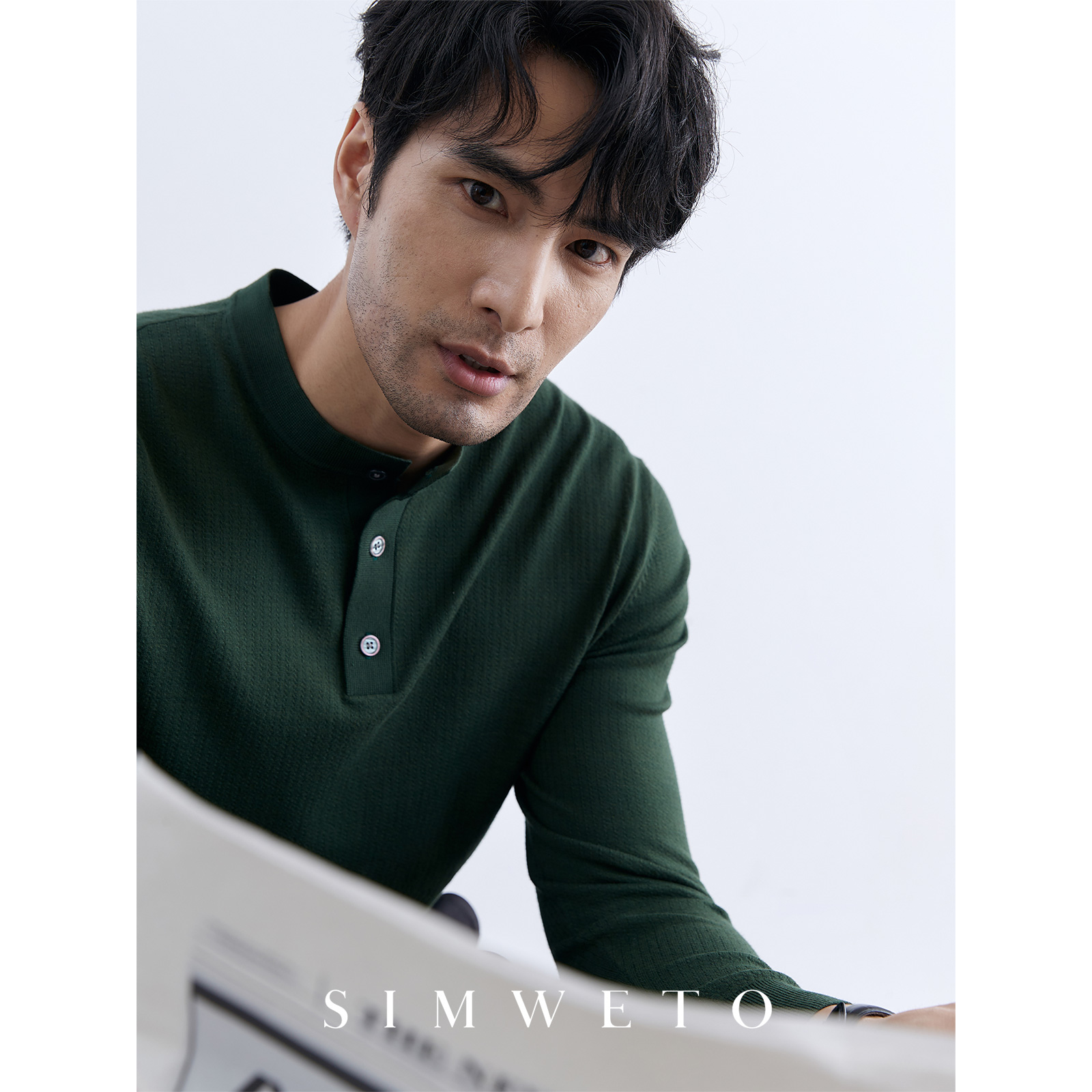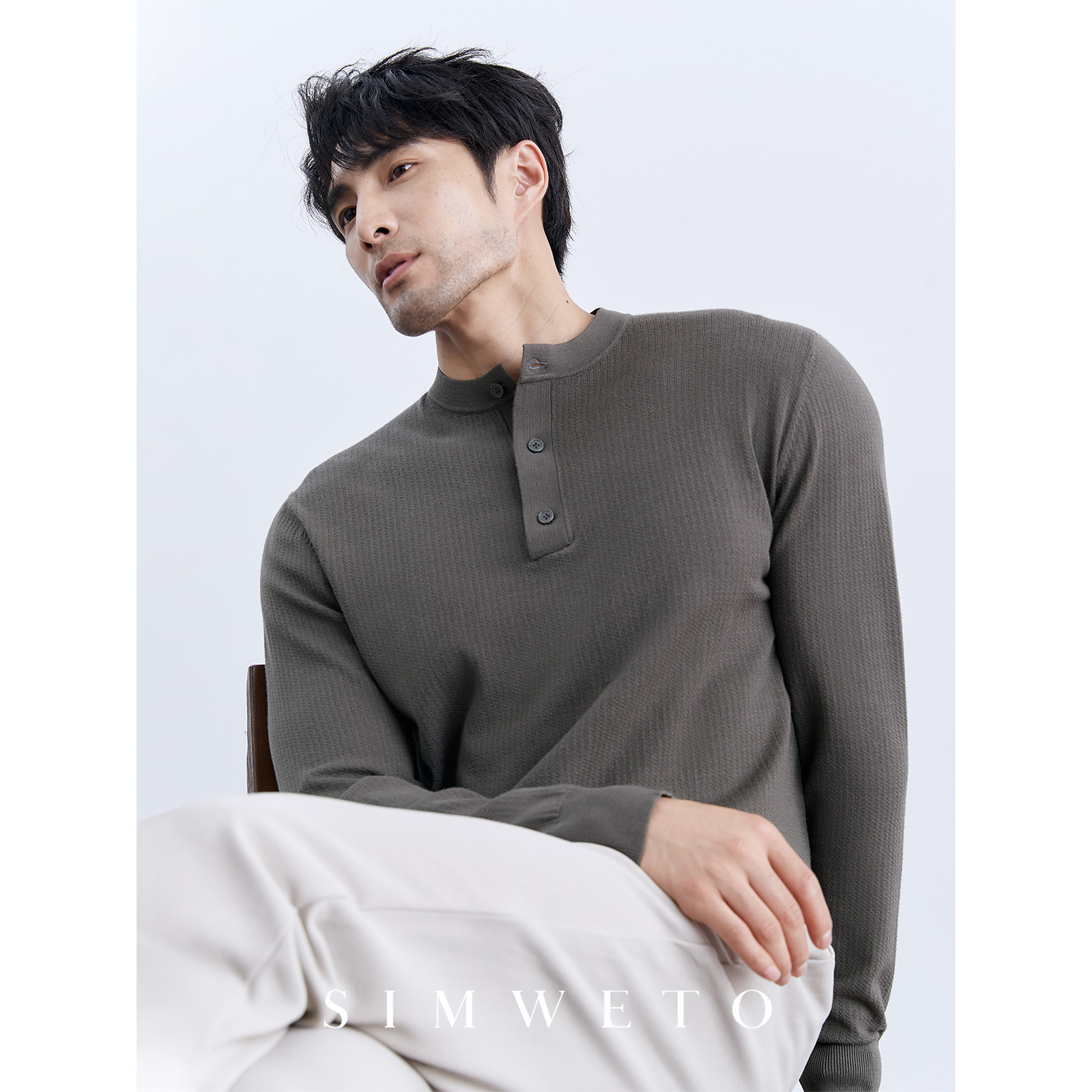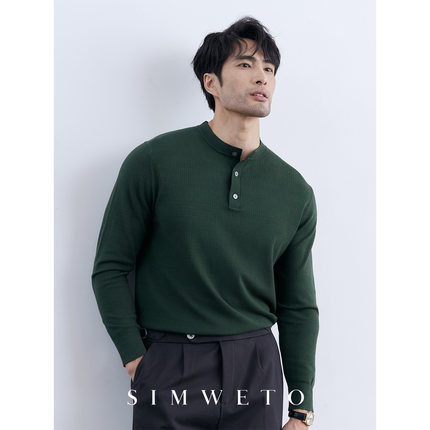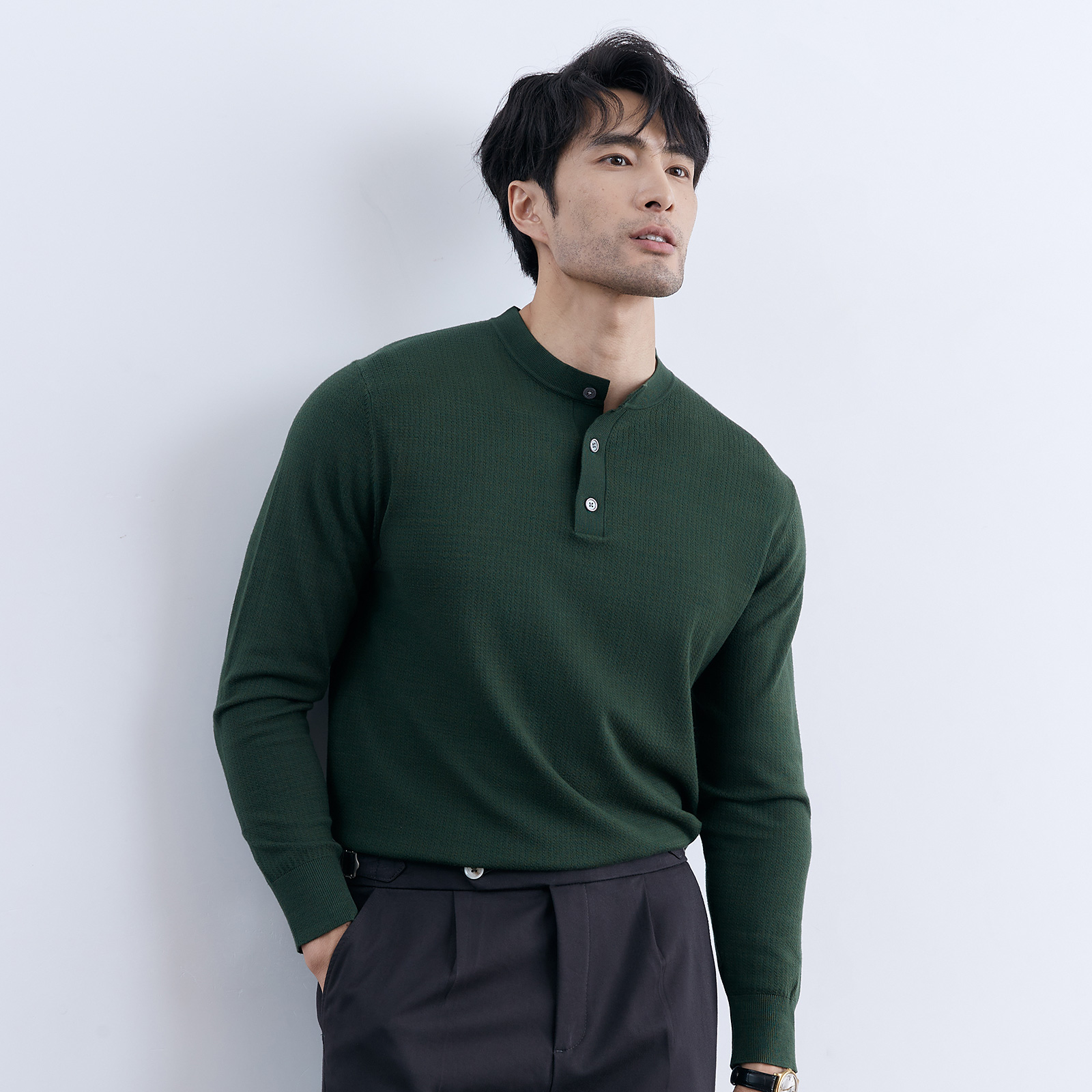 冬季舒适百搭 亨利领绿色毛衣男士休闲百搭高级感圆领针织亨利衫