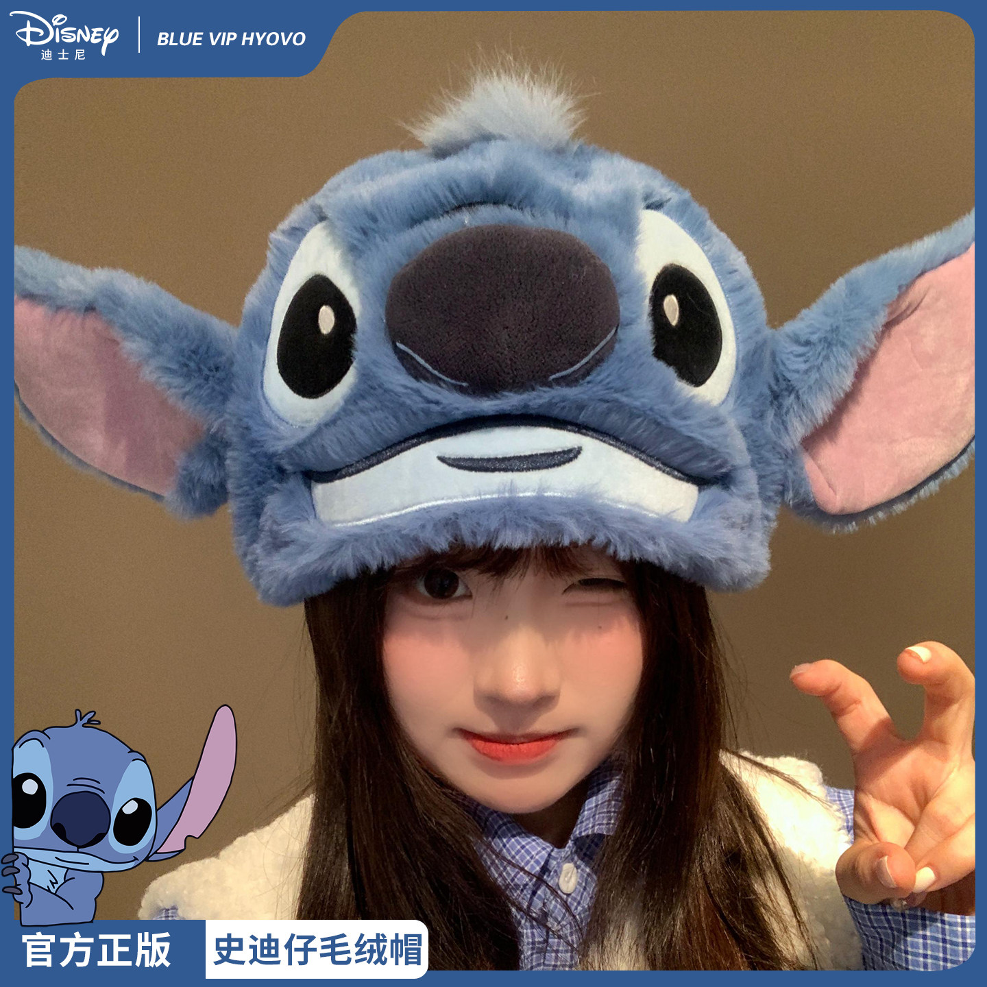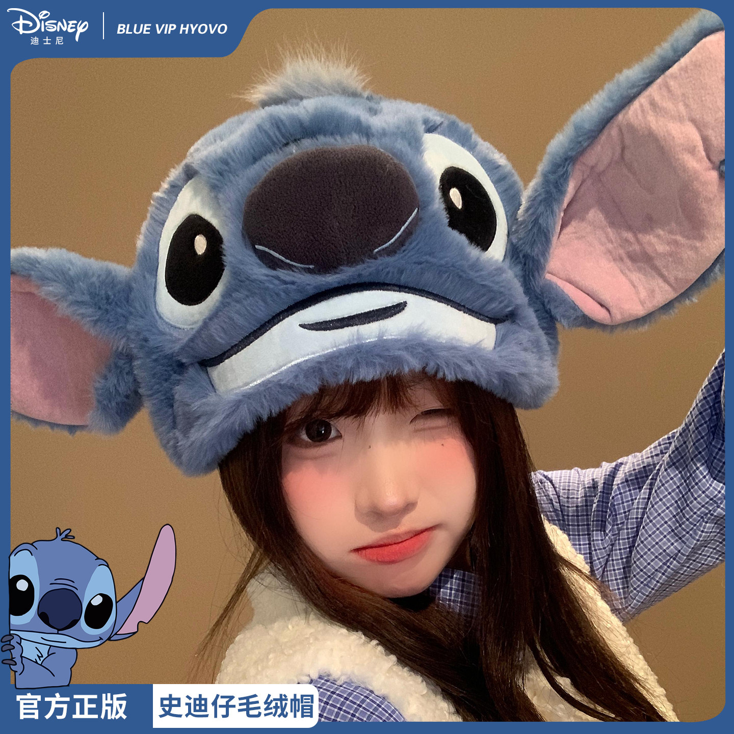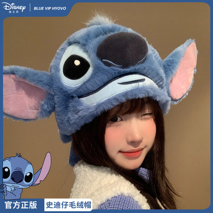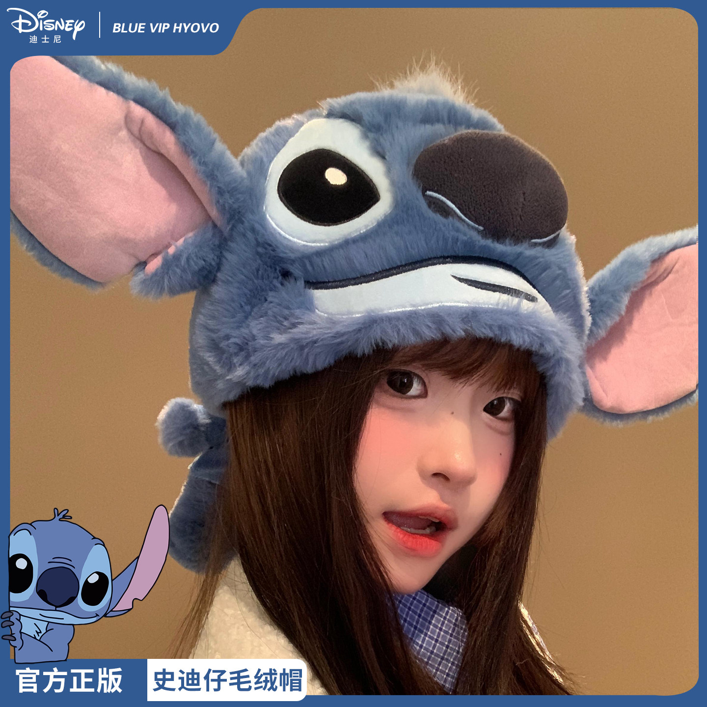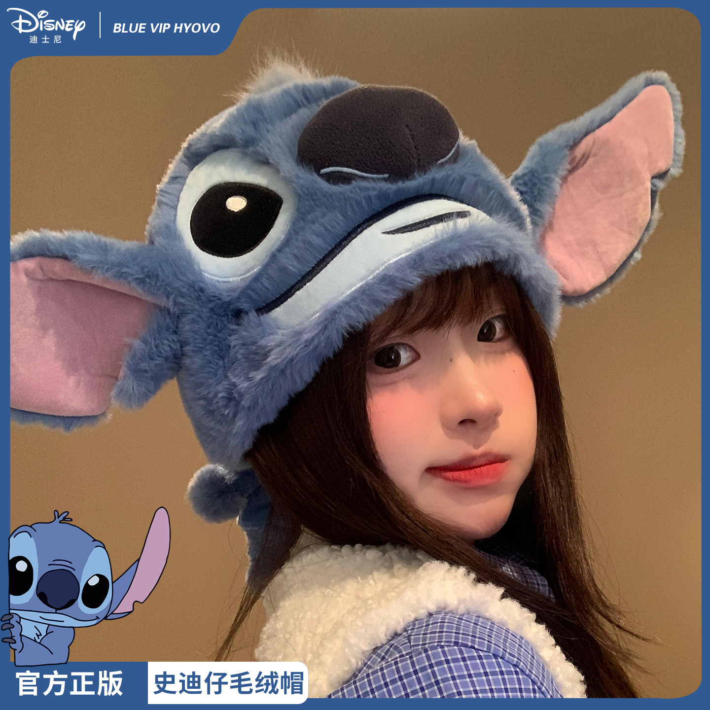 迪士尼史迪仔玩偶毛绒帽子女秋冬季可爱保暖显脸小护耳雷锋帽拍照