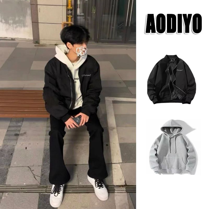 美式复古黑色飞行员夹克男春秋两件套装hiphop潮牌棒球服搭配卫衣
