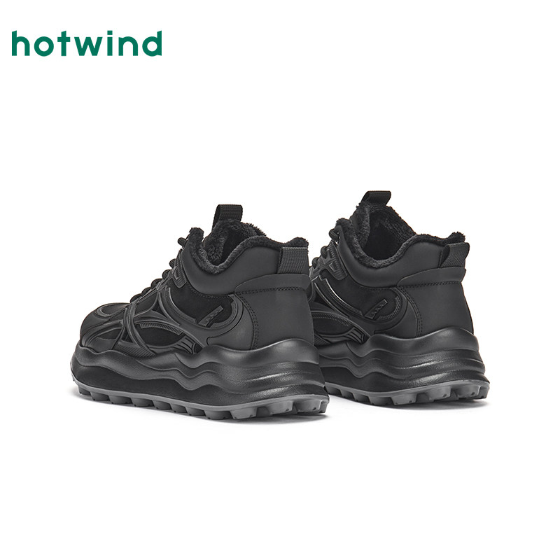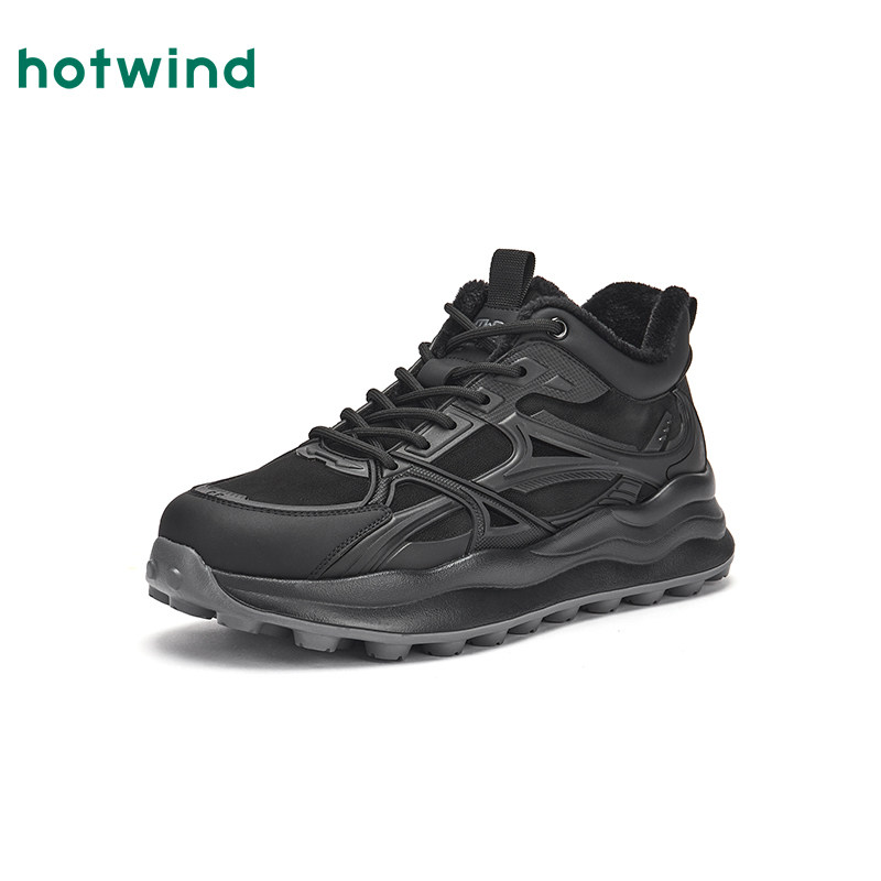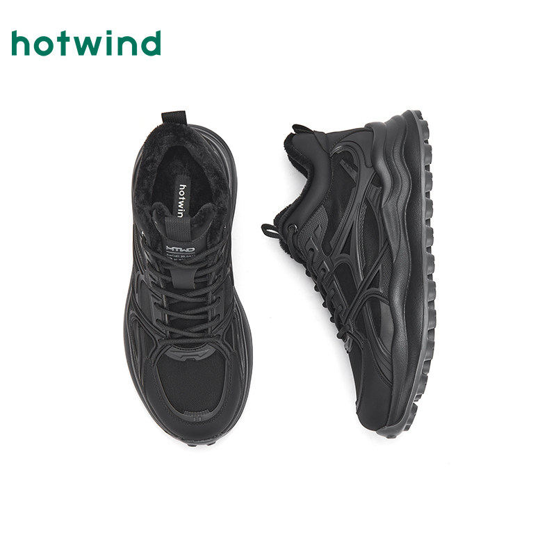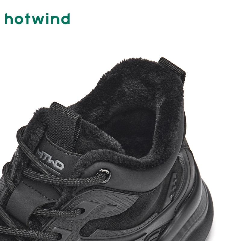 热风男鞋2025年冬季新款男士加绒运动休闲鞋保暖百搭黑色鞋子潮