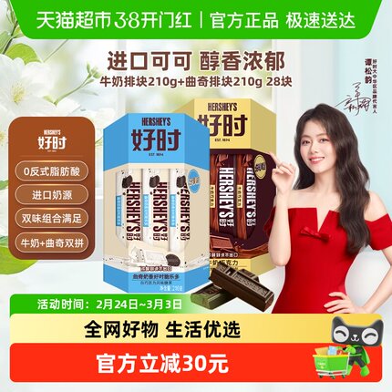 好时排块牛奶巧克力+曲奇奶香脆乐多210g*2盒进口糖果出游送礼