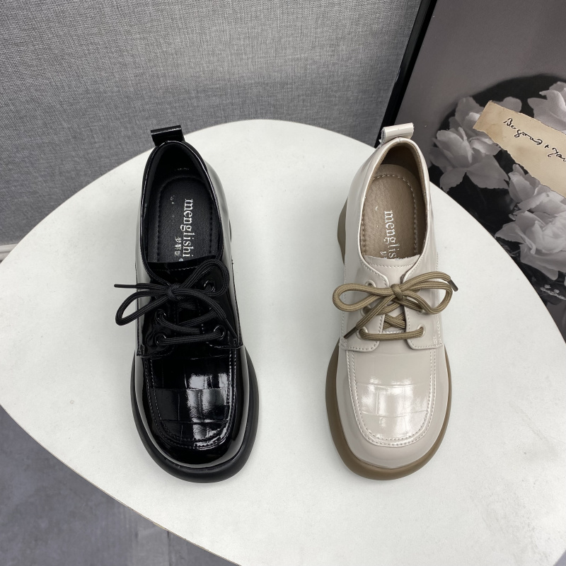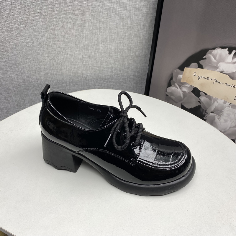 厂家断码处理2024春新款真皮女鞋圆头粗跟系带深口牛皮舒适女单鞋