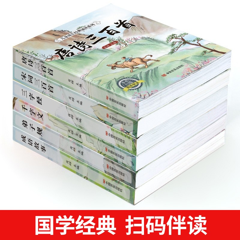 6册 完整版全套国学启蒙注音版唐诗三百首幼儿早教三字经书儿童千字文弟子规经典书籍正版全集古诗300首小学生宋词三百首成语故事