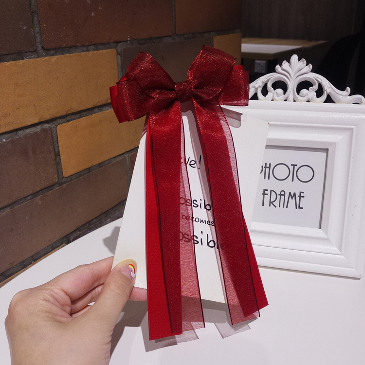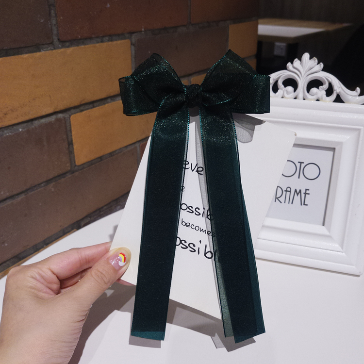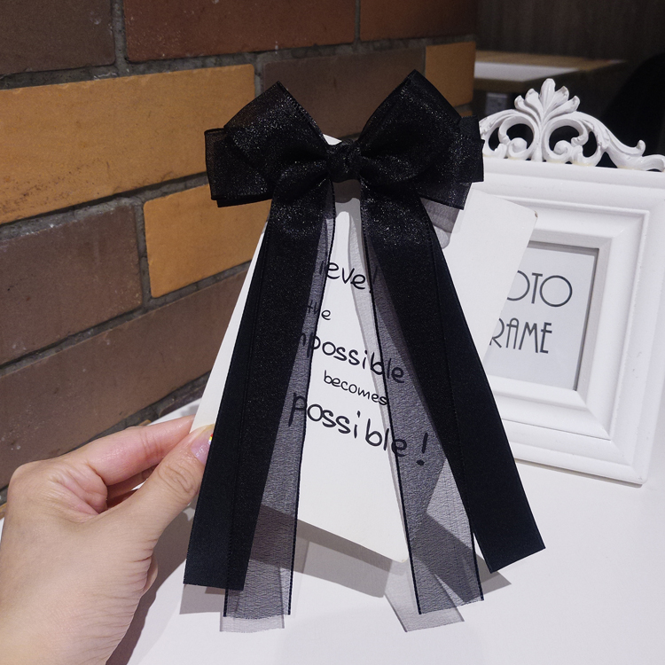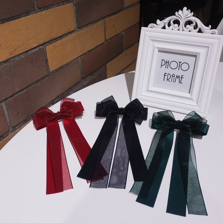 纯手工蝴蝶结发夹复古双层超仙飘带发饰弹簧夹后脑勺马尾夹发卡女