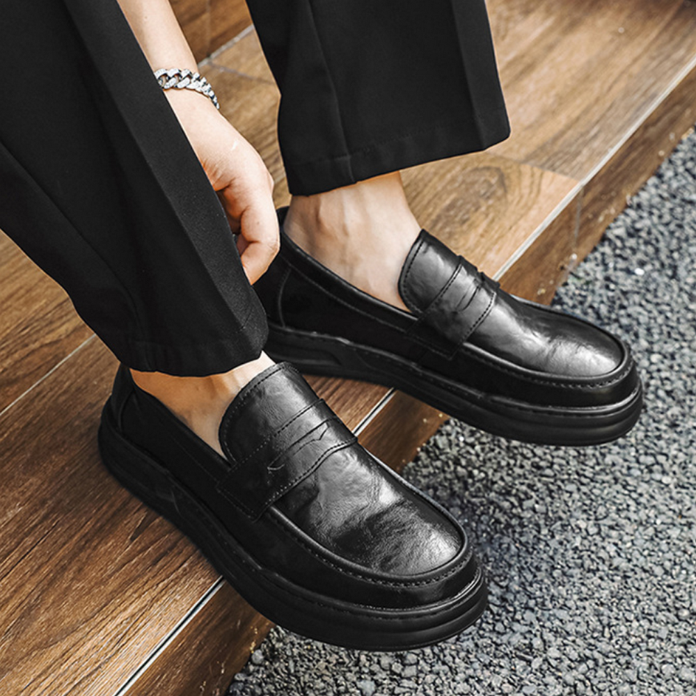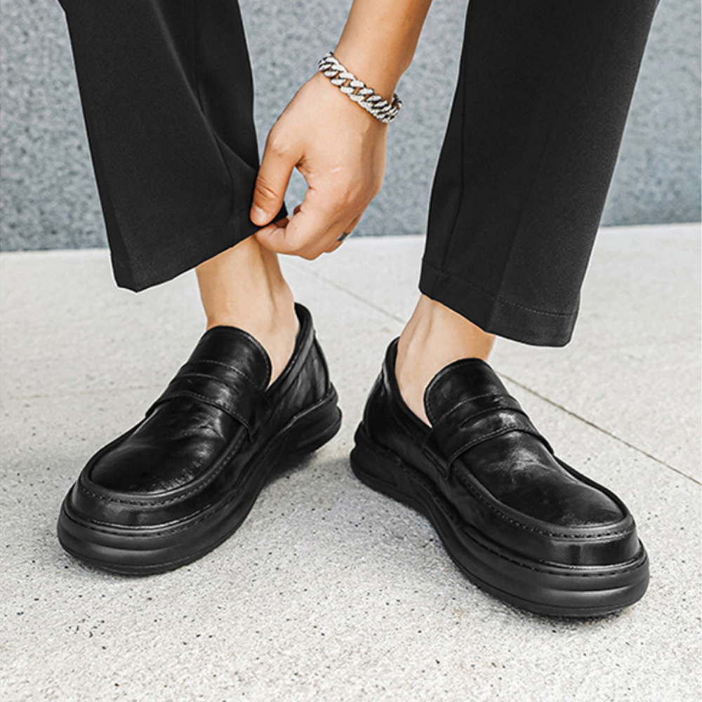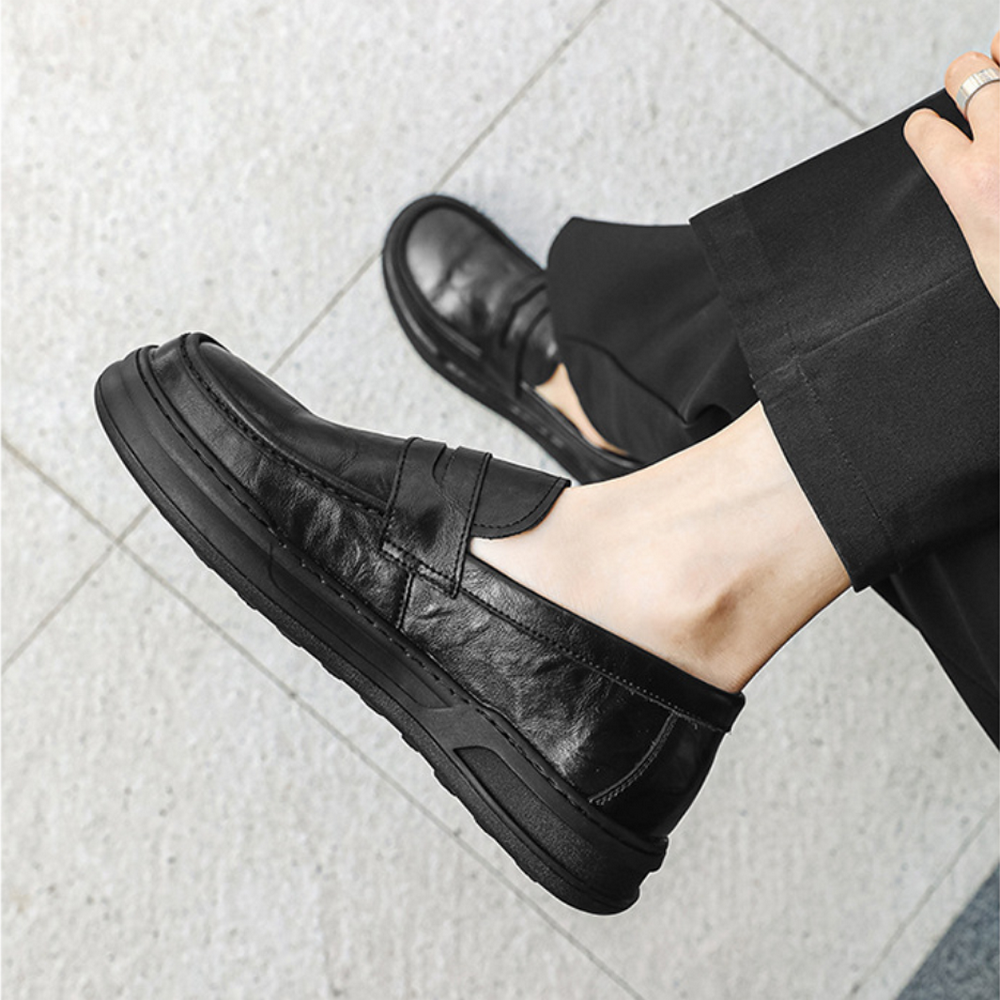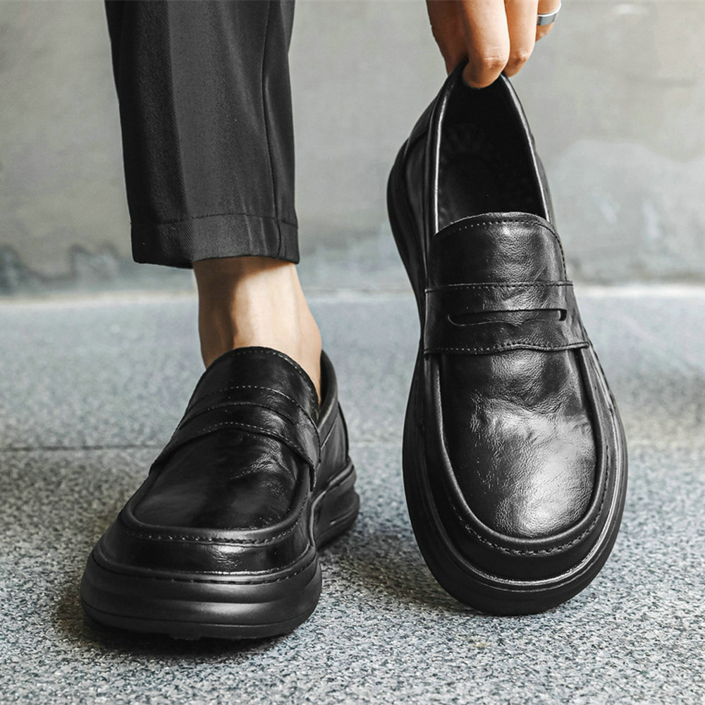 乐福鞋男士真皮黑色小皮鞋软皮软底休闲日系舒适软面一脚蹬豆豆鞋