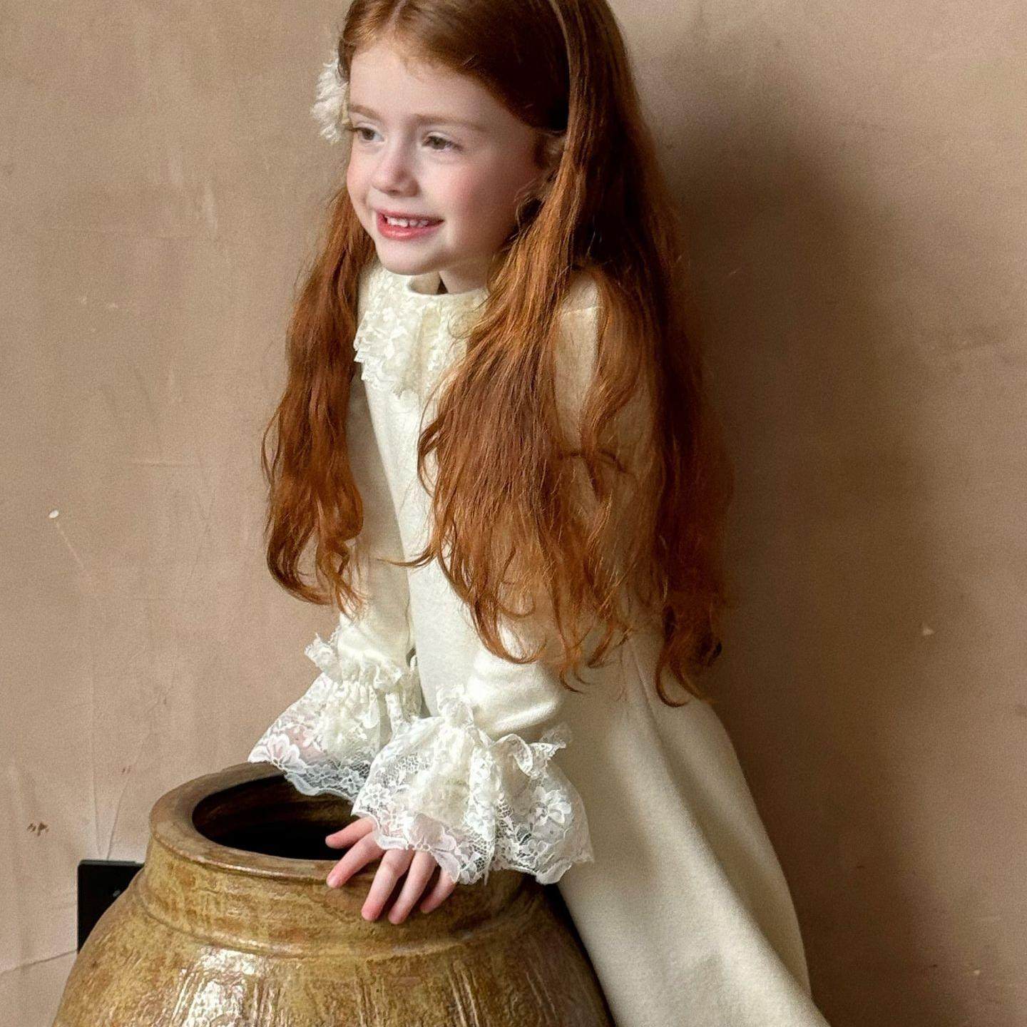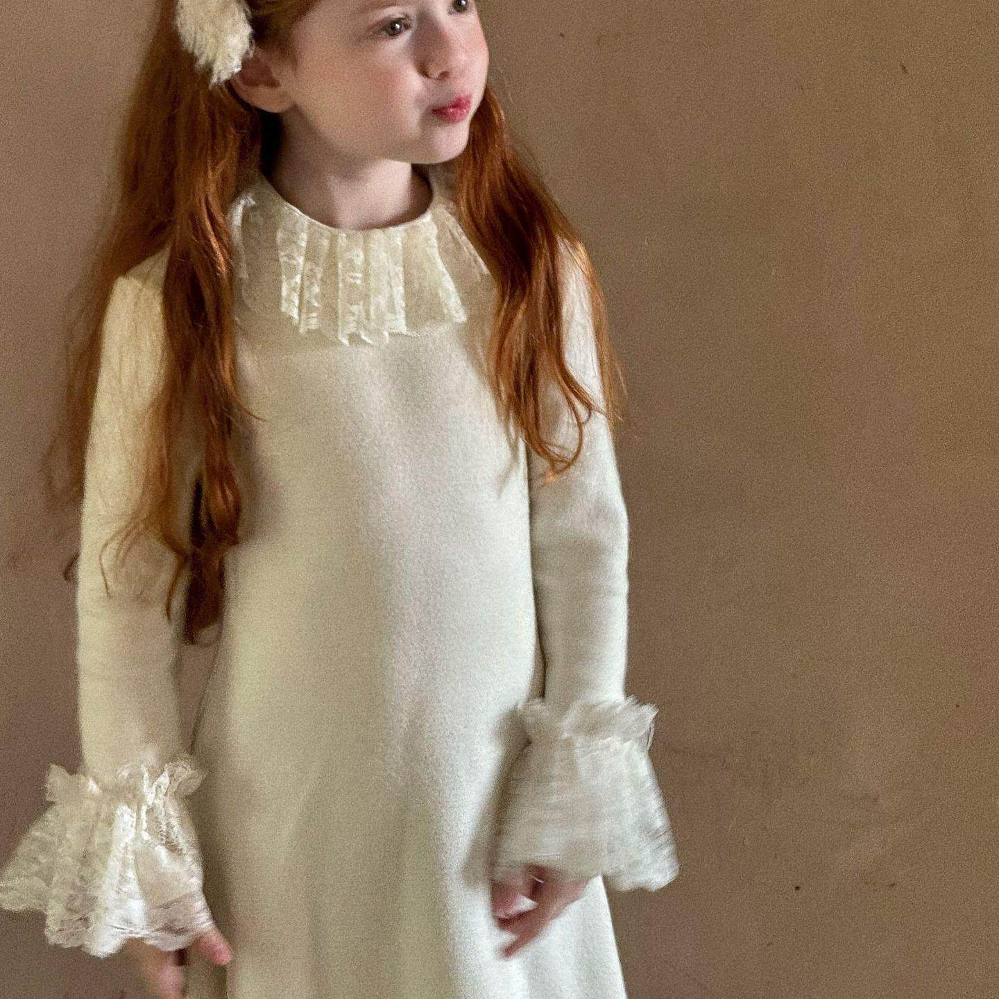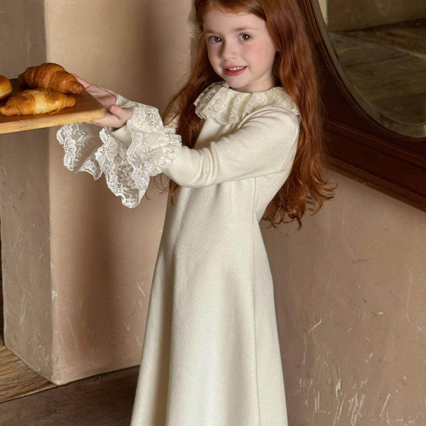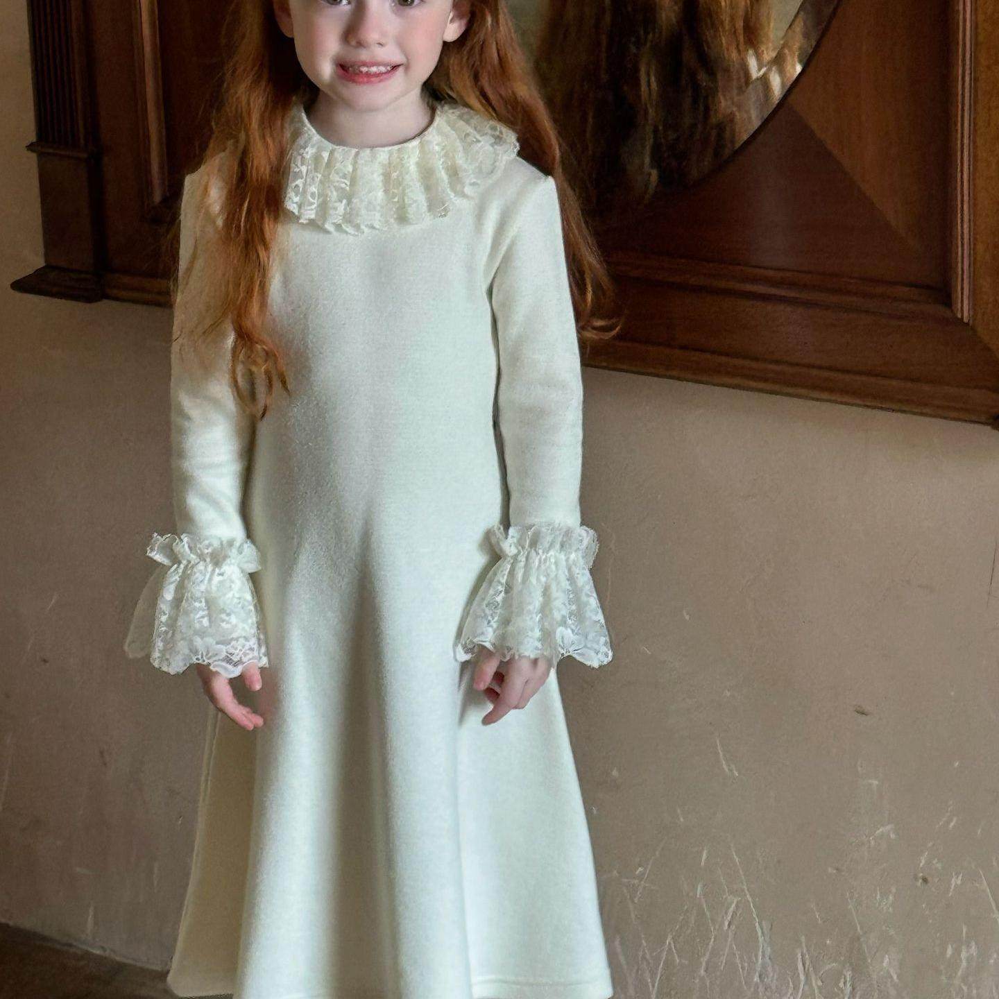 2024秋冬新款童装韩版女童温柔蕾丝领长裙儿童内搭花边领连衣裙
