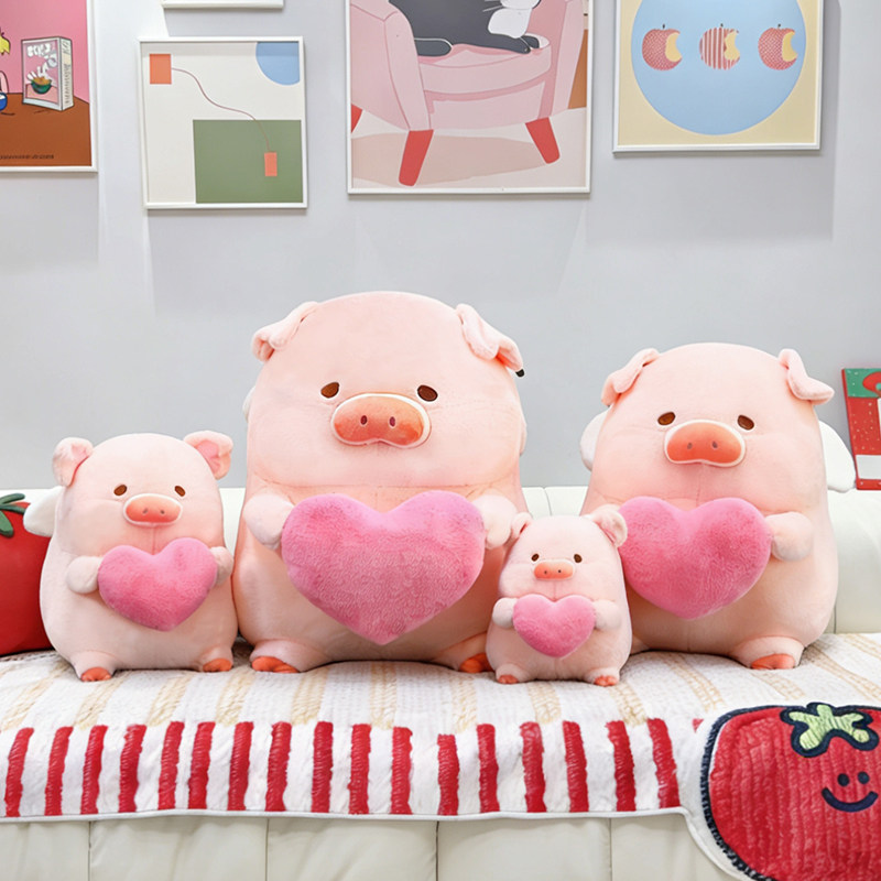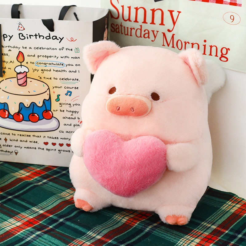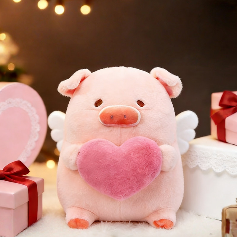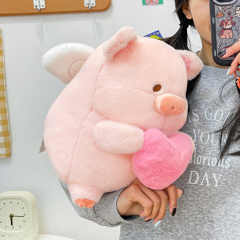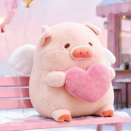 抱着粉色爱心小猪毛绒玩具公仔可爱天使翅膀情人节送女友礼物抱枕