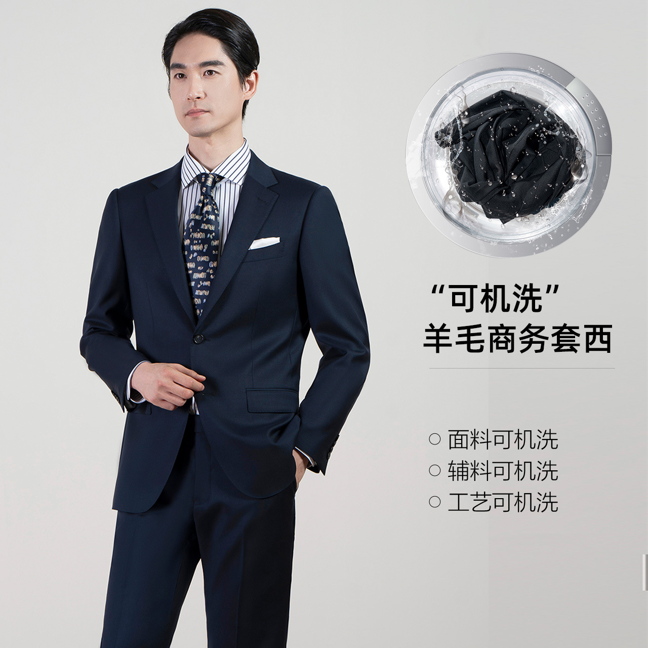 骆豪品牌70%羊毛档男西服套装男士西装套装伴郎团服银行工作服