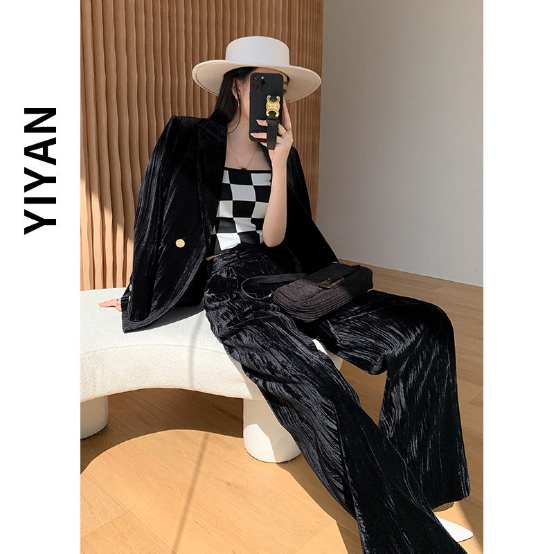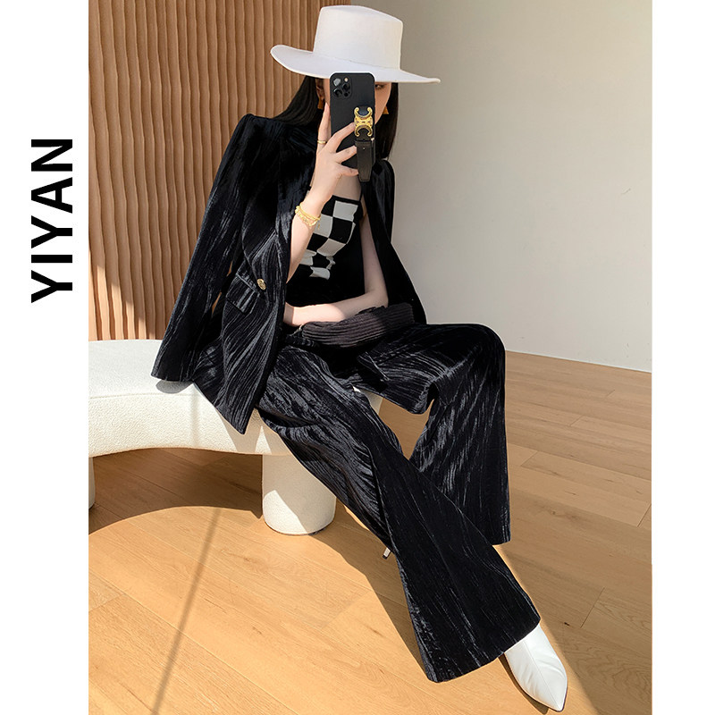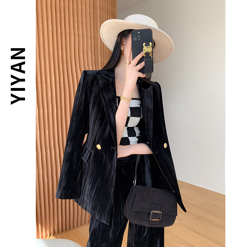 黑色金丝绒高端西装套装女秋冬新款休闲时尚气质女神范高级西服