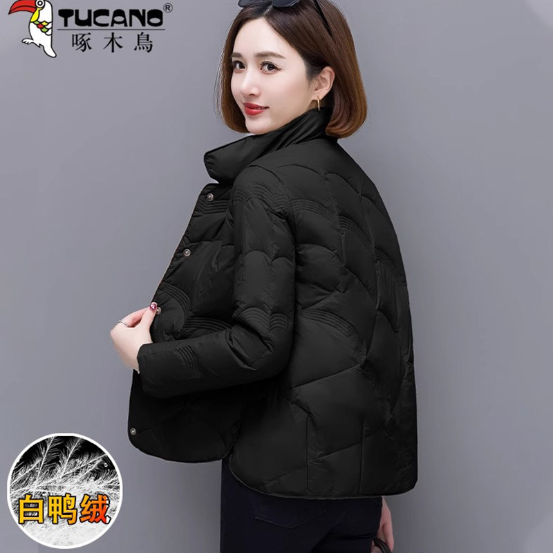 啄木鸟短款轻薄羽绒服女冬季2025新款时尚中年妈妈女士白鸭绒外套