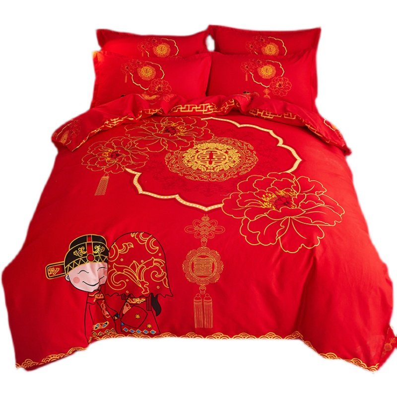 婚庆四件套大红色结婚全棉1.8m2.0m床双人被套床单式喜庆床上用品