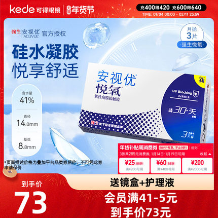 强生安视优vita悦氧月抛3片隐形近视眼镜硅水凝胶官方旗舰店正品