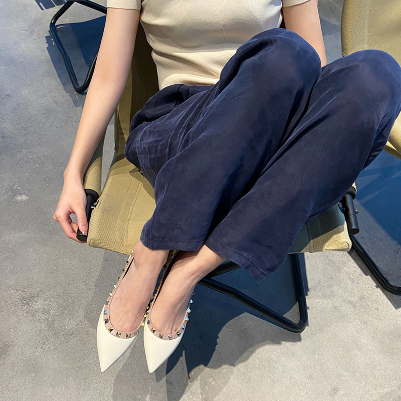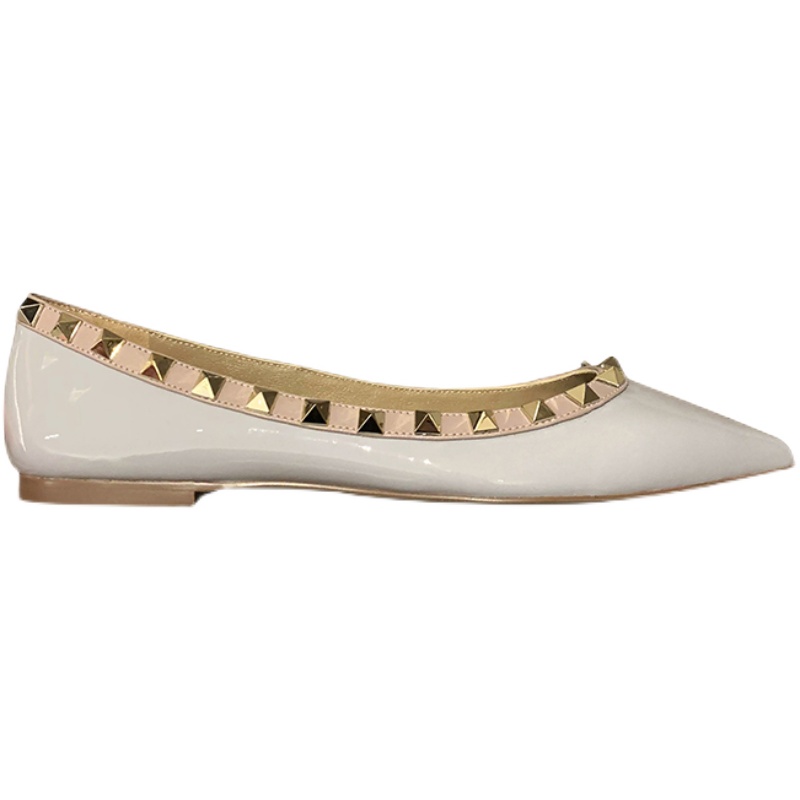 口碑系列哟~夏季新款真皮尖头浅口铆钉平底鞋女单鞋漆皮休闲百搭