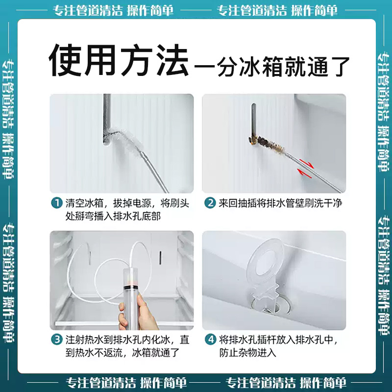 冰箱疏通器通排水孔家用五件套清洗管道专用堵塞除冰清理神器工具