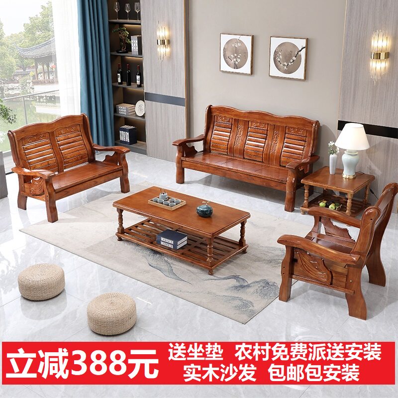 全实木沙发客厅农村办公室三位茶几木质经济型凉椅