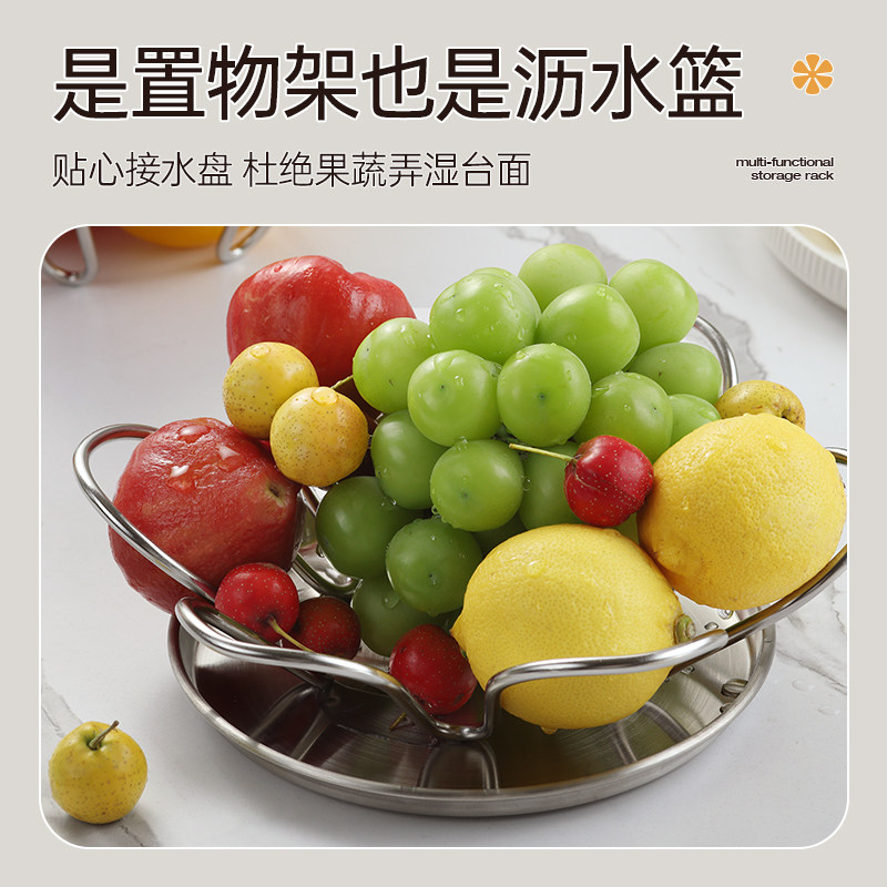 欧琳厨房多功能置物架304不锈钢沥水架蒸笼架隔热架水果收纳架子