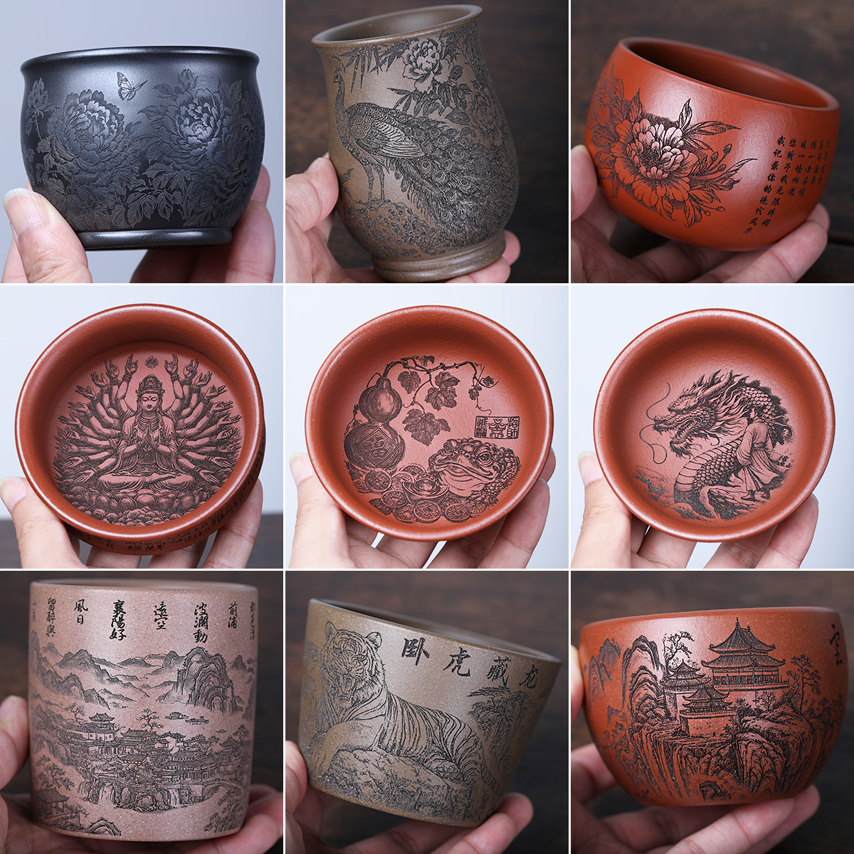 宜兴紫砂杯功夫茶杯单杯刻绘小杯主人品茗杯男大茶碗个人杯子口杯