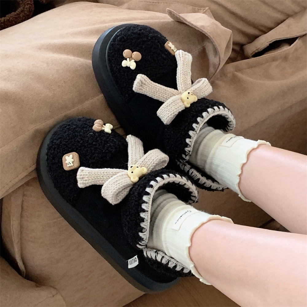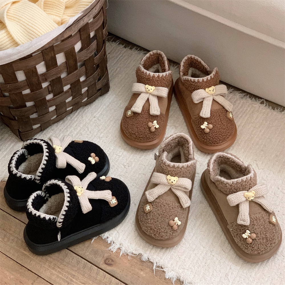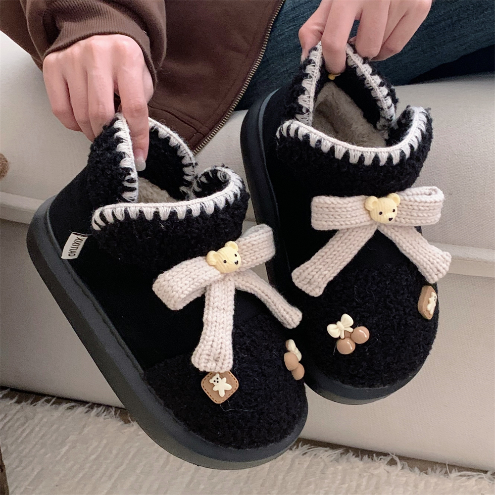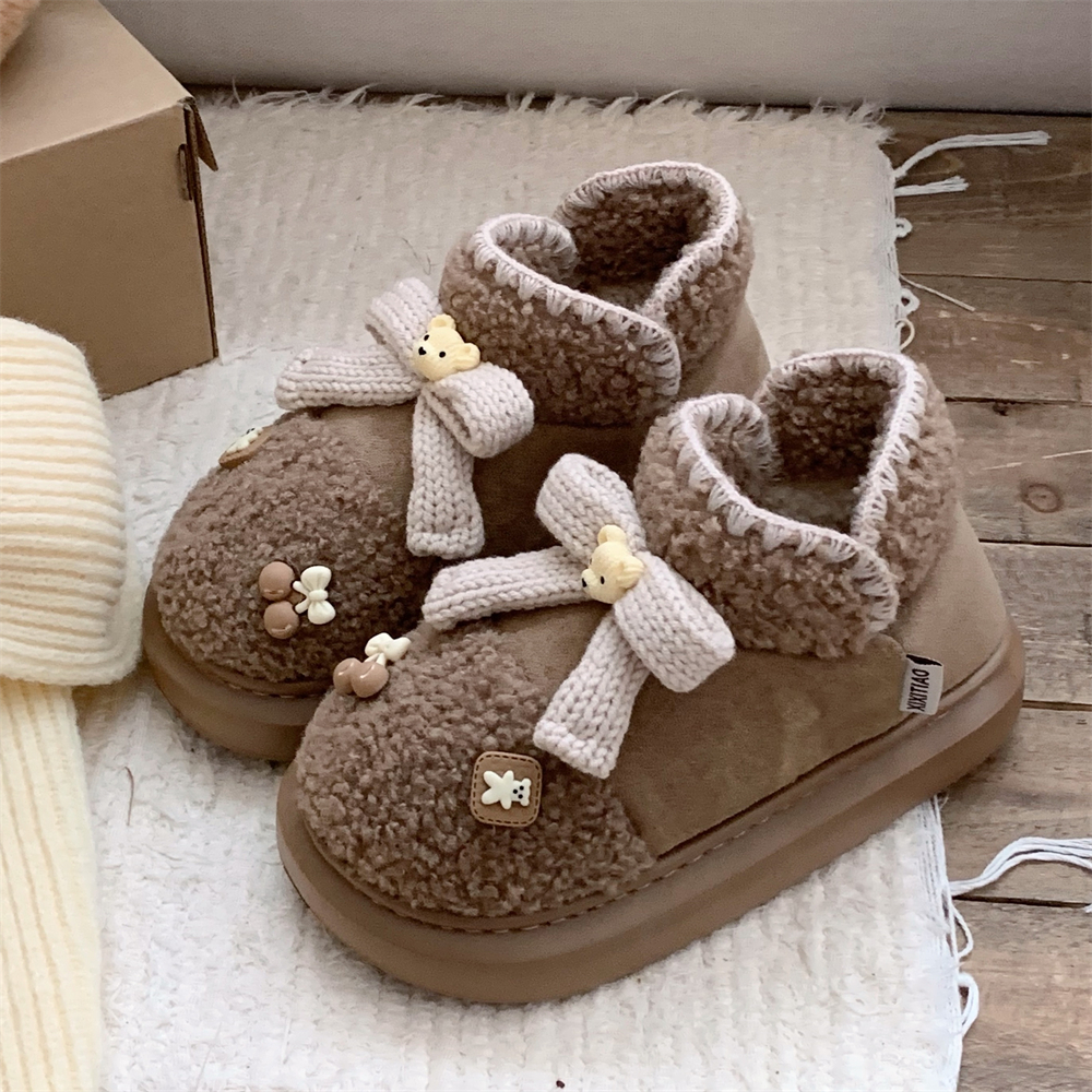 细细条 樱桃小熊棉鞋短靴女百搭冬季保暖可爱外穿时尚网红雪地靴