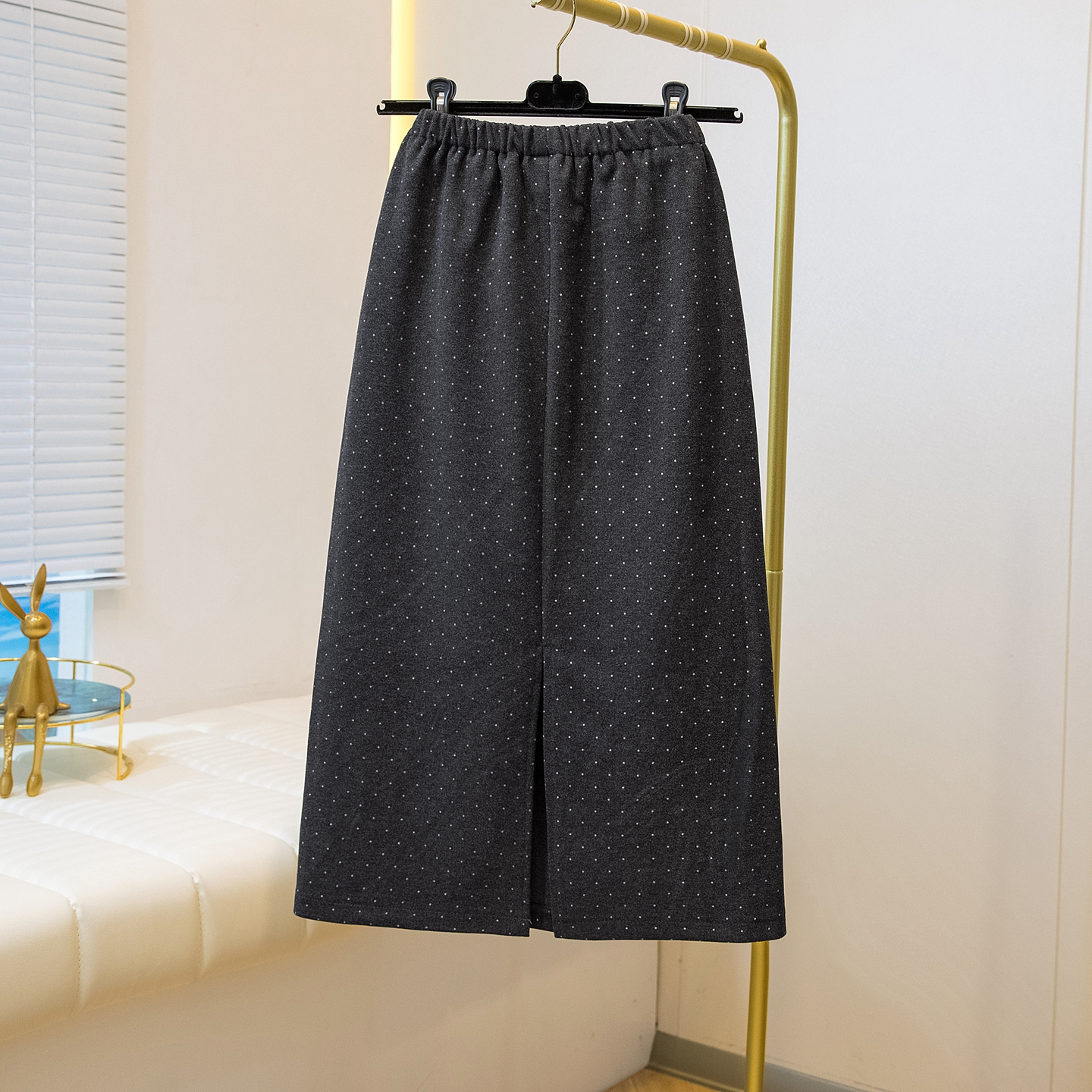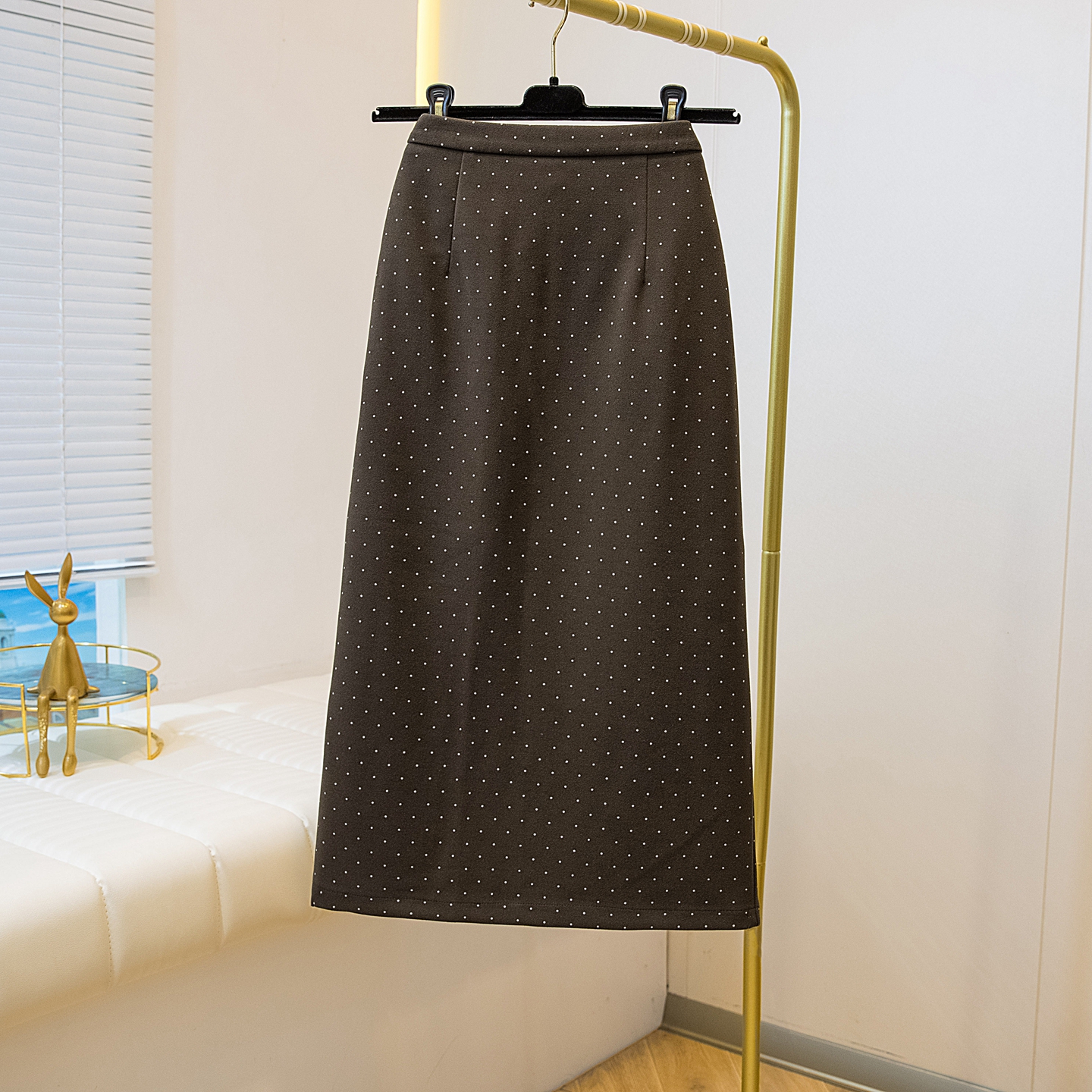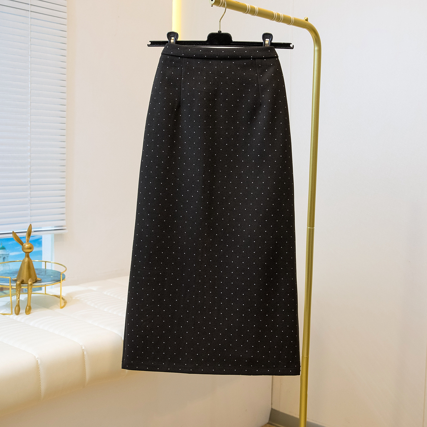 小个子点点毛呢半身裙女2025秋冬后开叉高腰A字包臀裙百搭中长裙