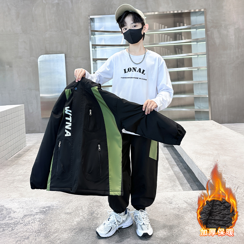 儿童加绒套装男童秋冬装2025新款大童加厚男孩春秋帅气运动两件套