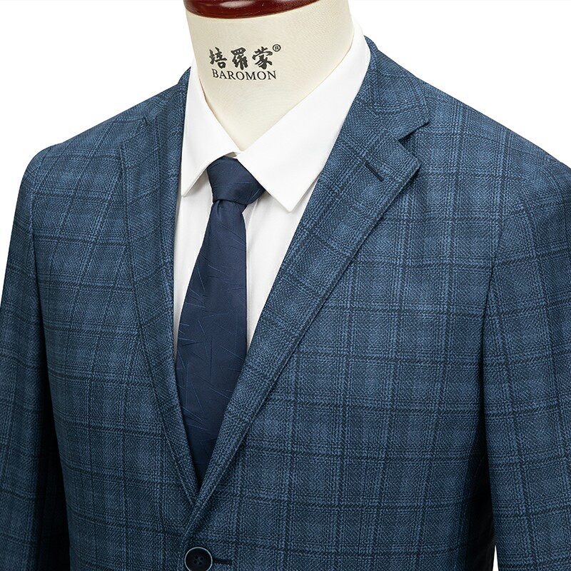 【无内衬薄款西服】培罗蒙2026春季男士休闲单西蓝色格子西装外套