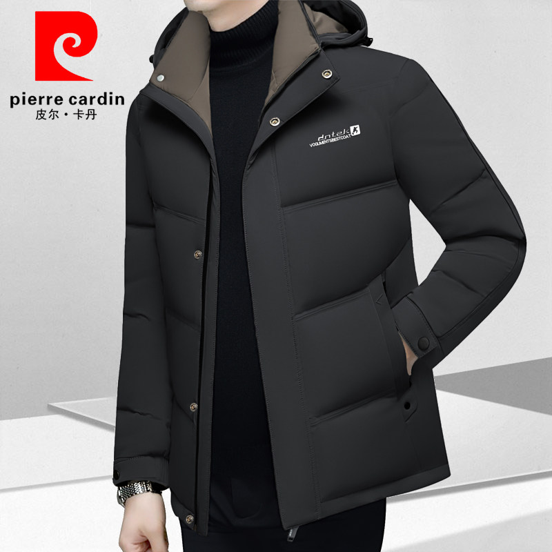 皮尔卡丹男士羽绒服加厚白鸭绒可拆帽冬季新款休闲商务中青年外套