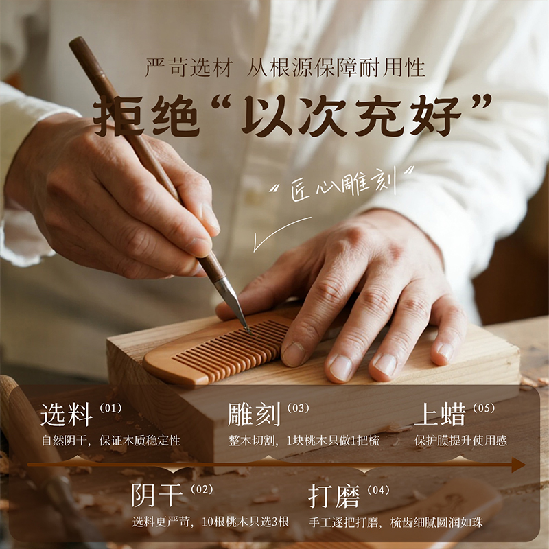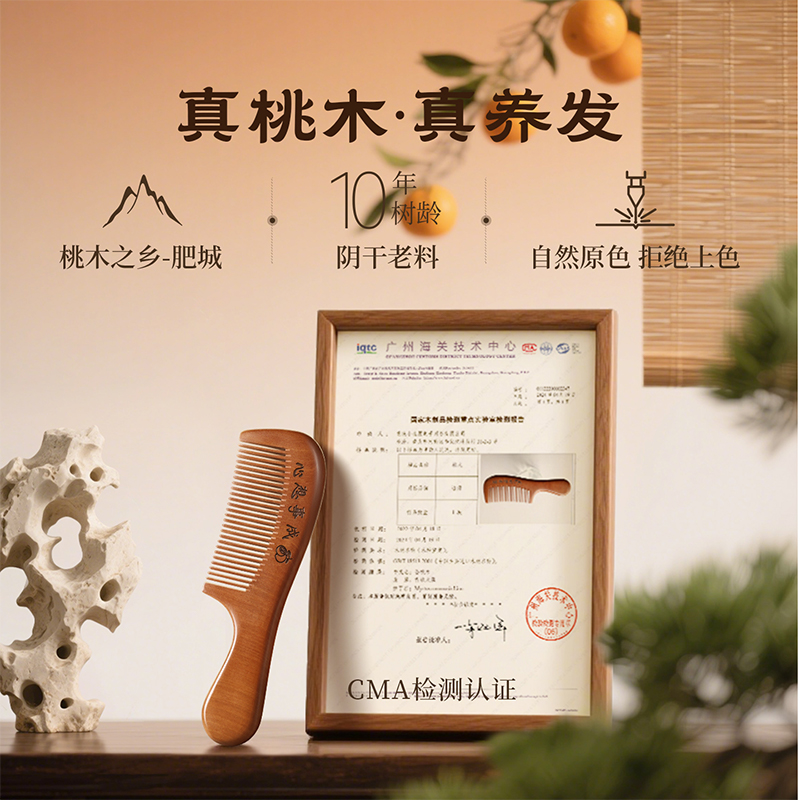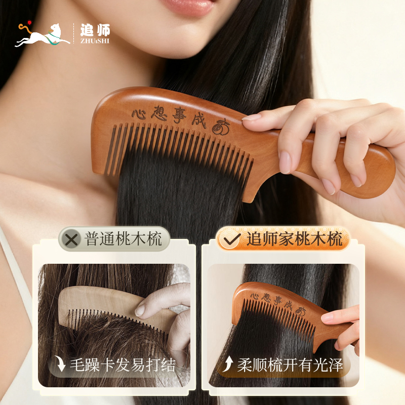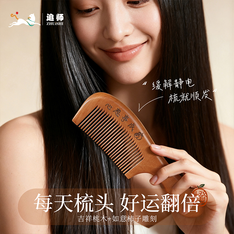 追师天然桃木梳子家用木头防静电正品实木梳随身男士女士长发专用