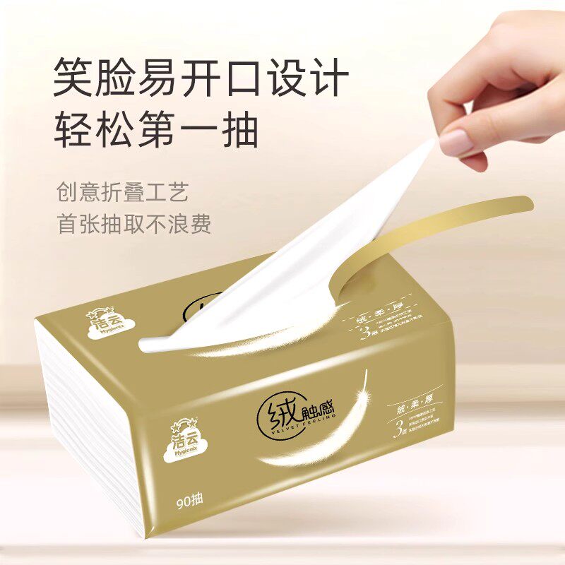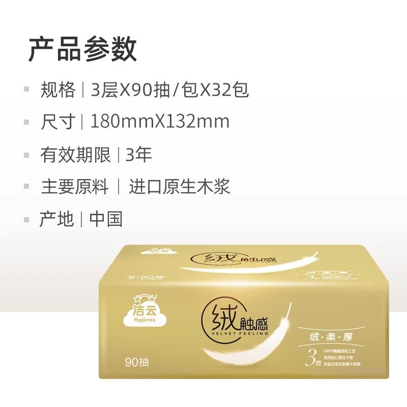 【包邮】洁云抽纸绒触感3层90抽×32包S码软包面纸柔软亲肤餐巾纸