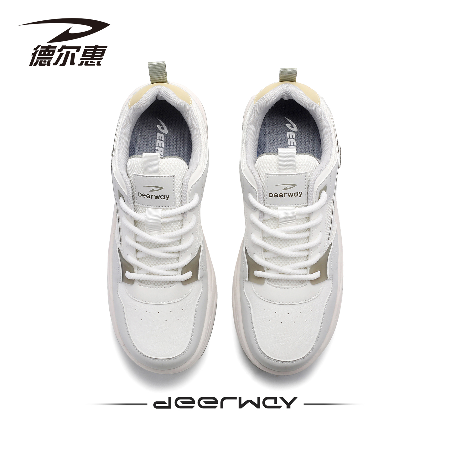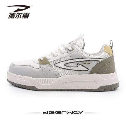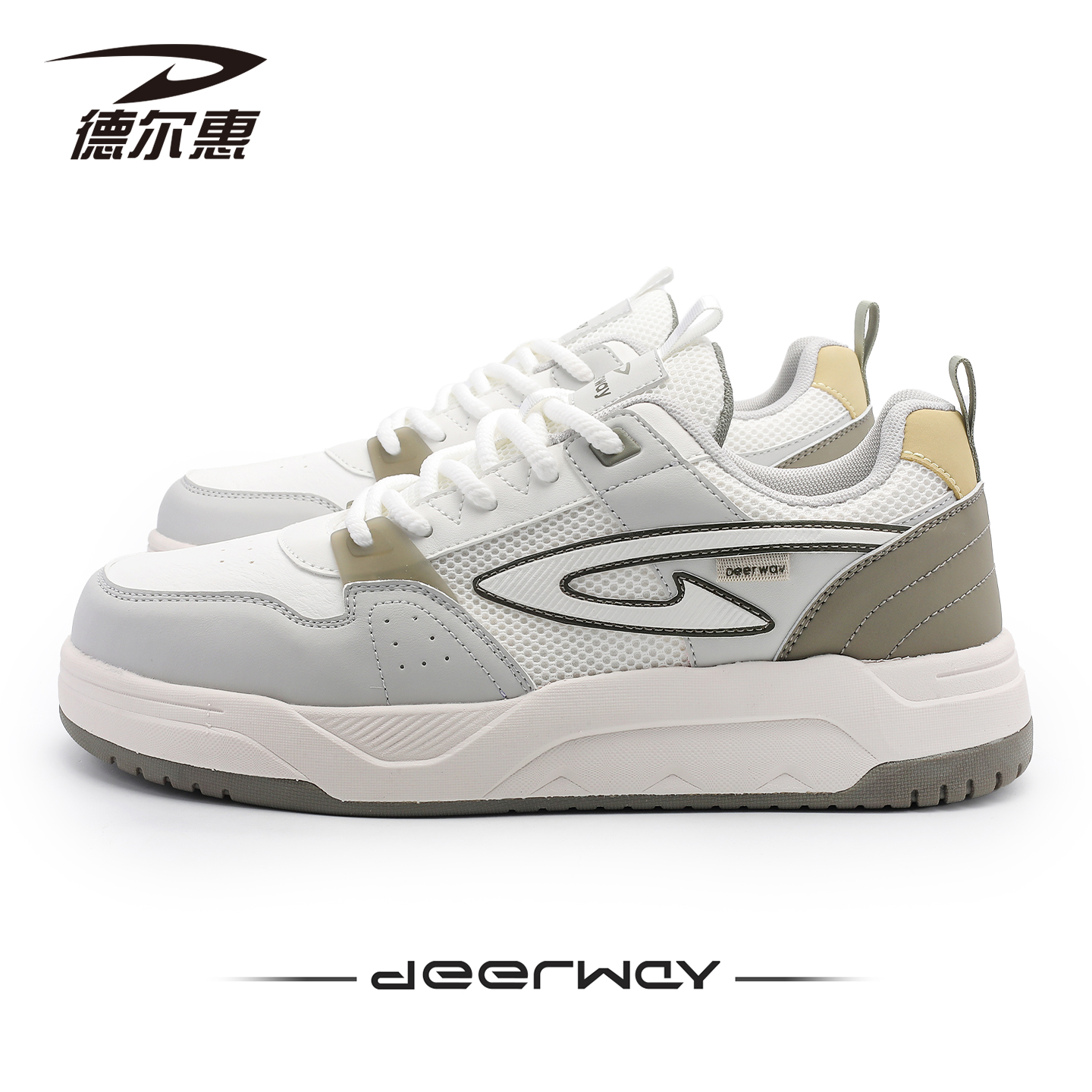 德尔惠板鞋男款2025新款秋季透气网面百搭防滑轻便休闲运动小白鞋