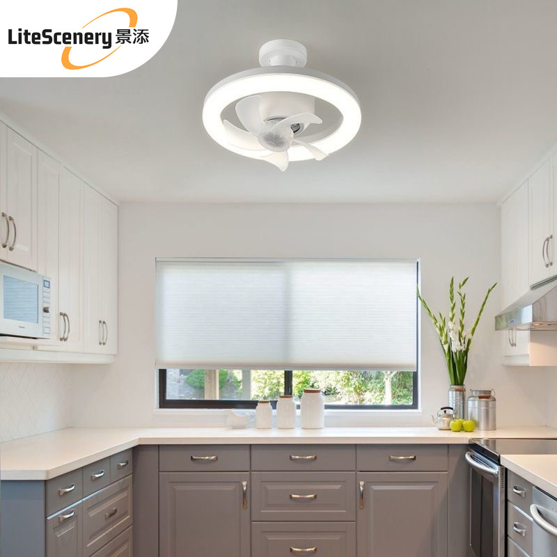 新款e27螺口摇头风扇灯简约节能LED智能遥控厨房卧室吸顶吊扇灯