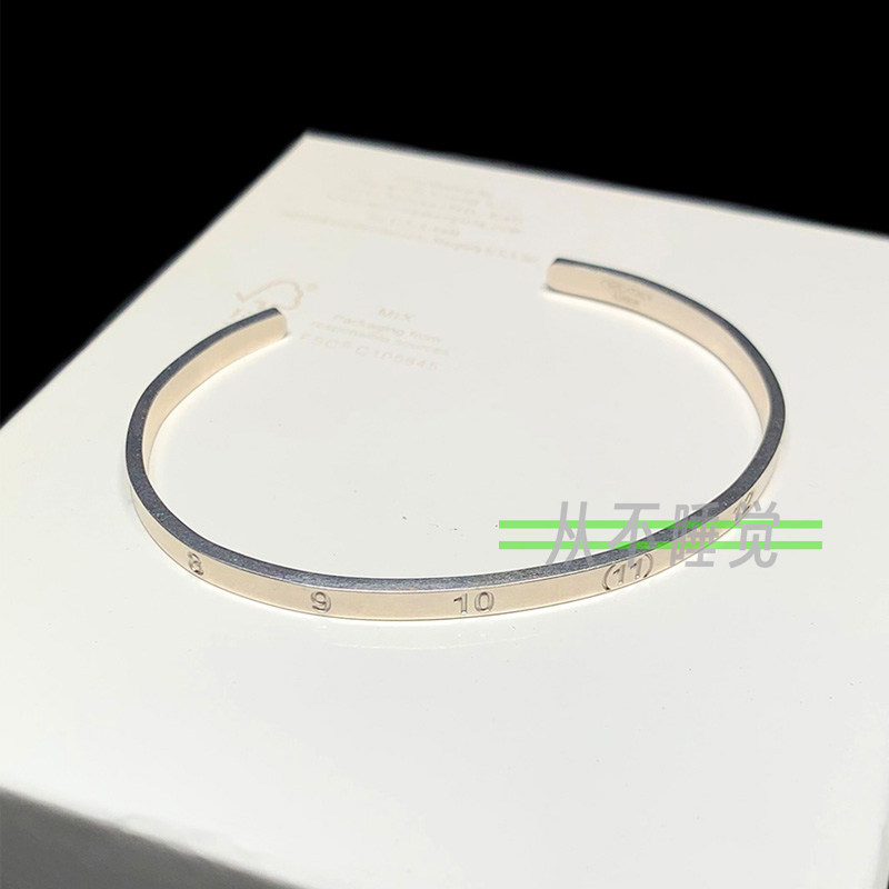 从不睡觉 原创设计MM风格光面数字造型窄款纯银开口手镯个性手环
