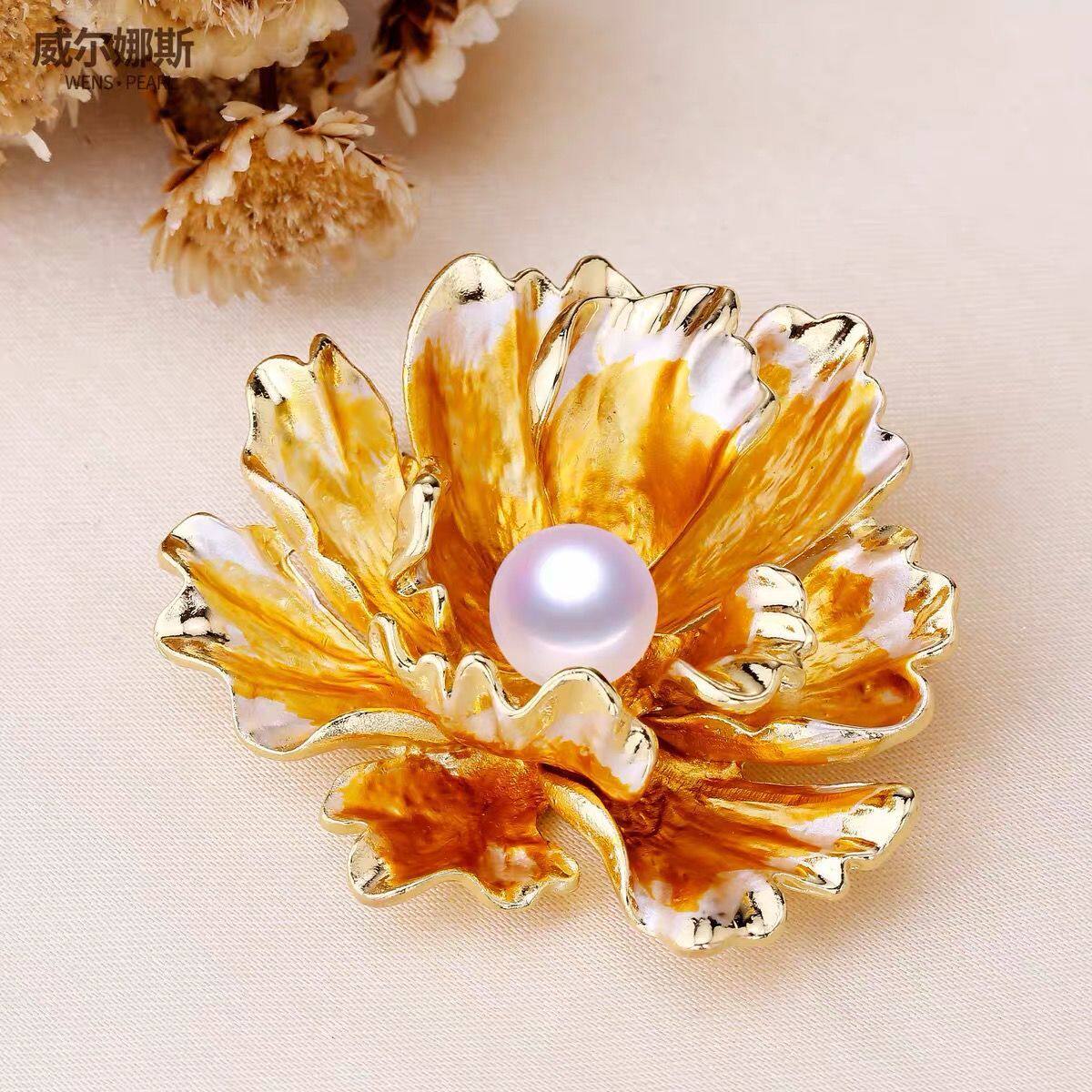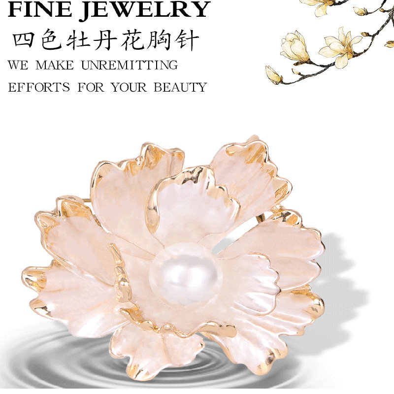 高档复古牡丹花胸针精致珍珠女士胸花优雅旗袍礼服中国风百搭配饰