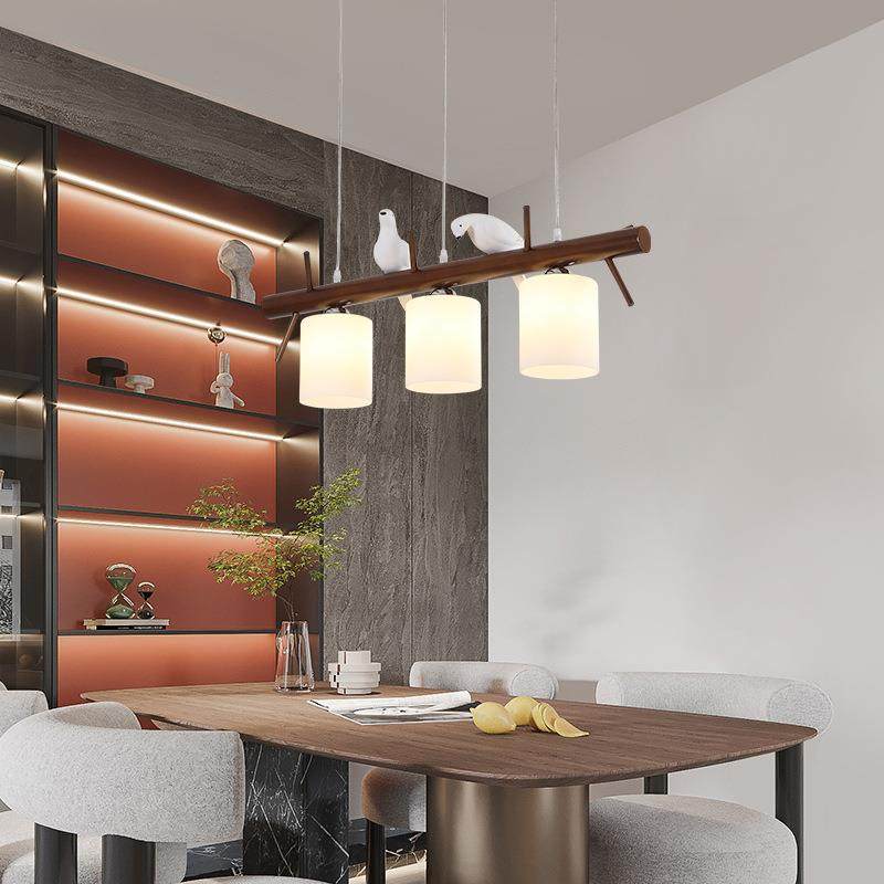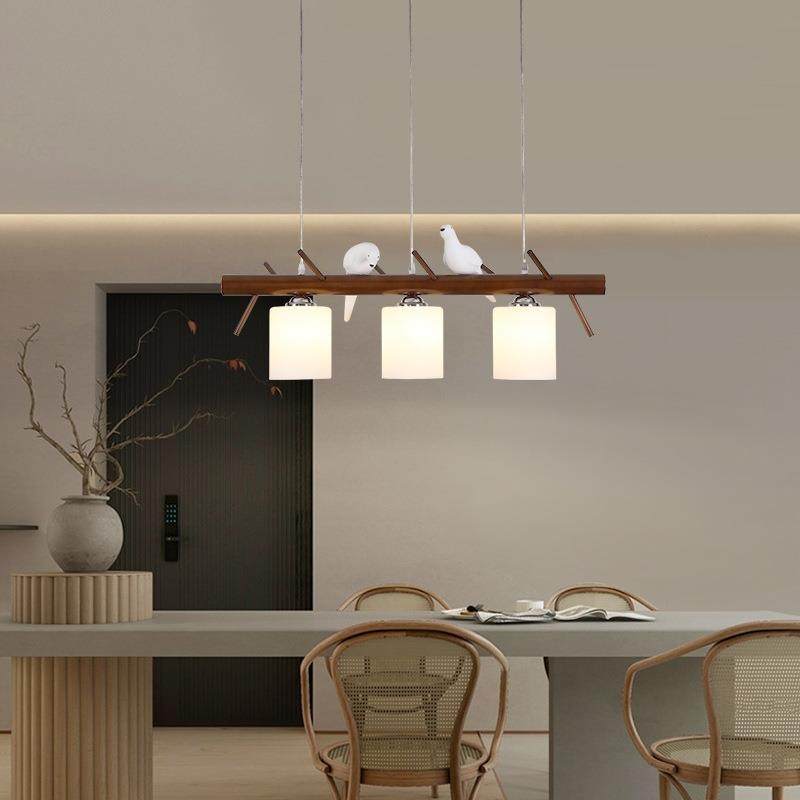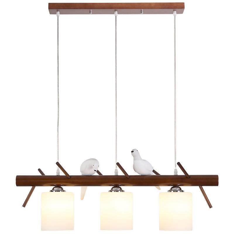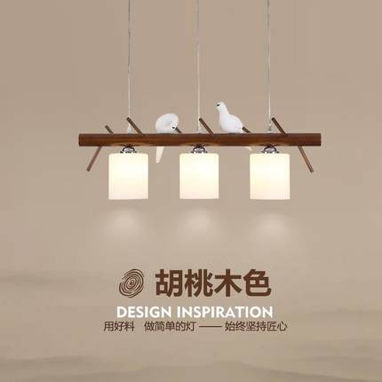 中式餐厅吊灯三头饭厅餐桌灯胡桃色简约现代实木创意个性小鸟吊灯